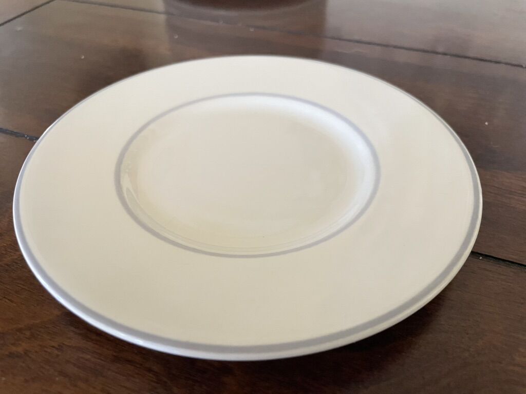 I have a set of & small vintage Pfaltzgraff plates. They are white with simple gray details. They are 6 inches across. The price is for all of them together. See my other ads for jewelry, artwork, home decor and more.