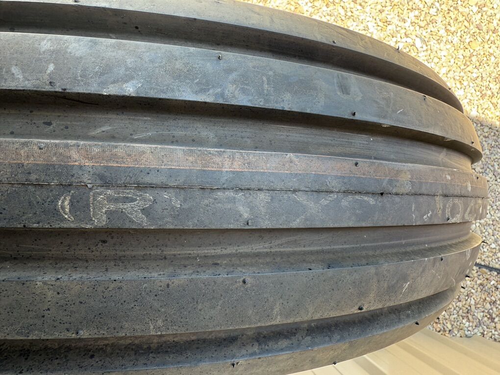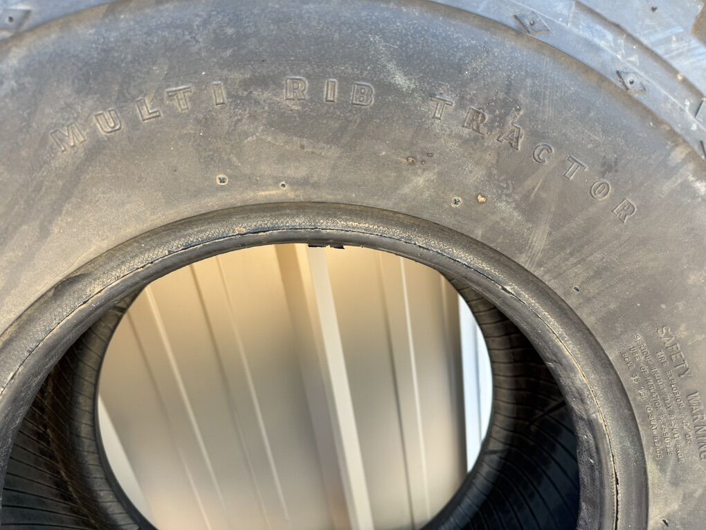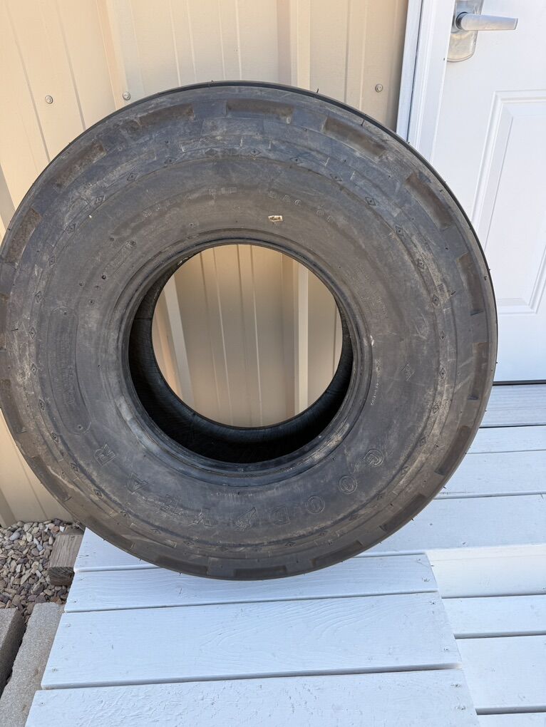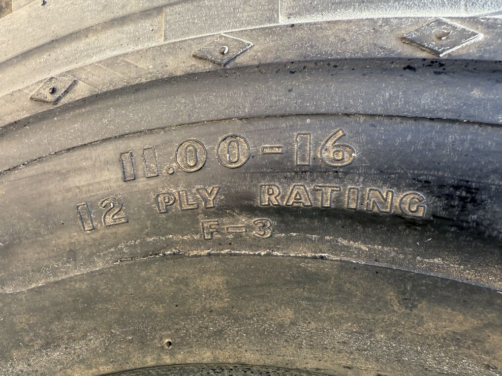 ApplePayGoodyear 4 rib 11.00-16 12 ply F3 tractor tire. As New. Never mounted. Has been in indoor storage. Rubber is pliable and no cracks. I do not see a DOT number on it.