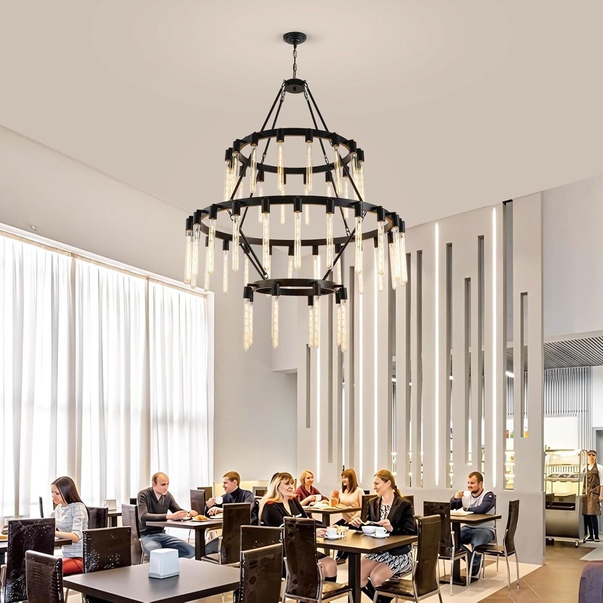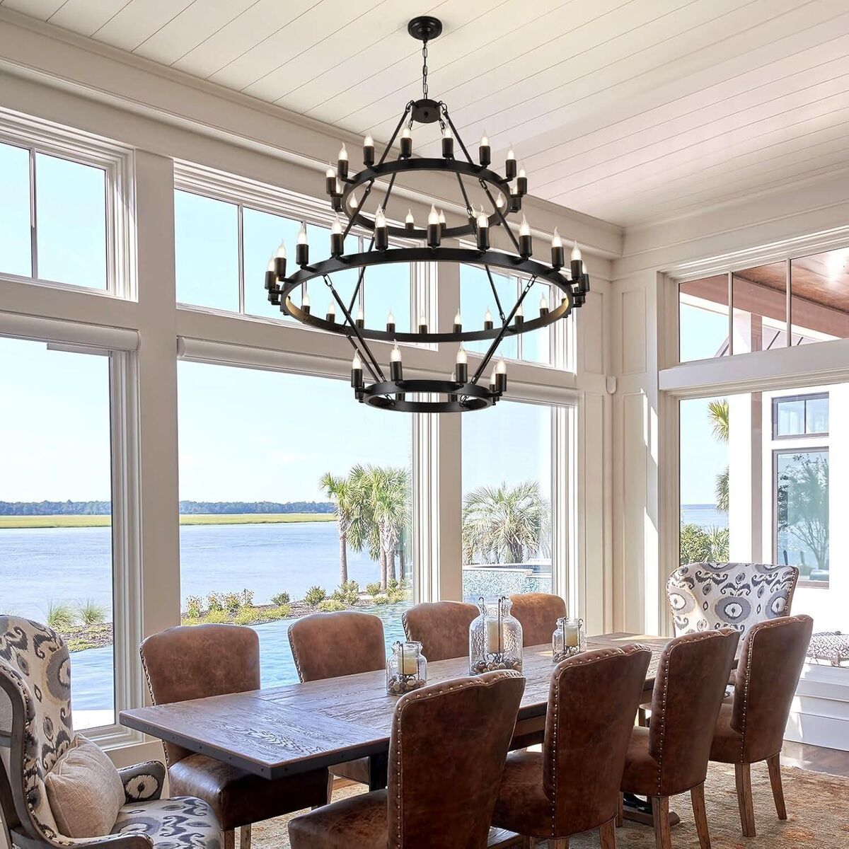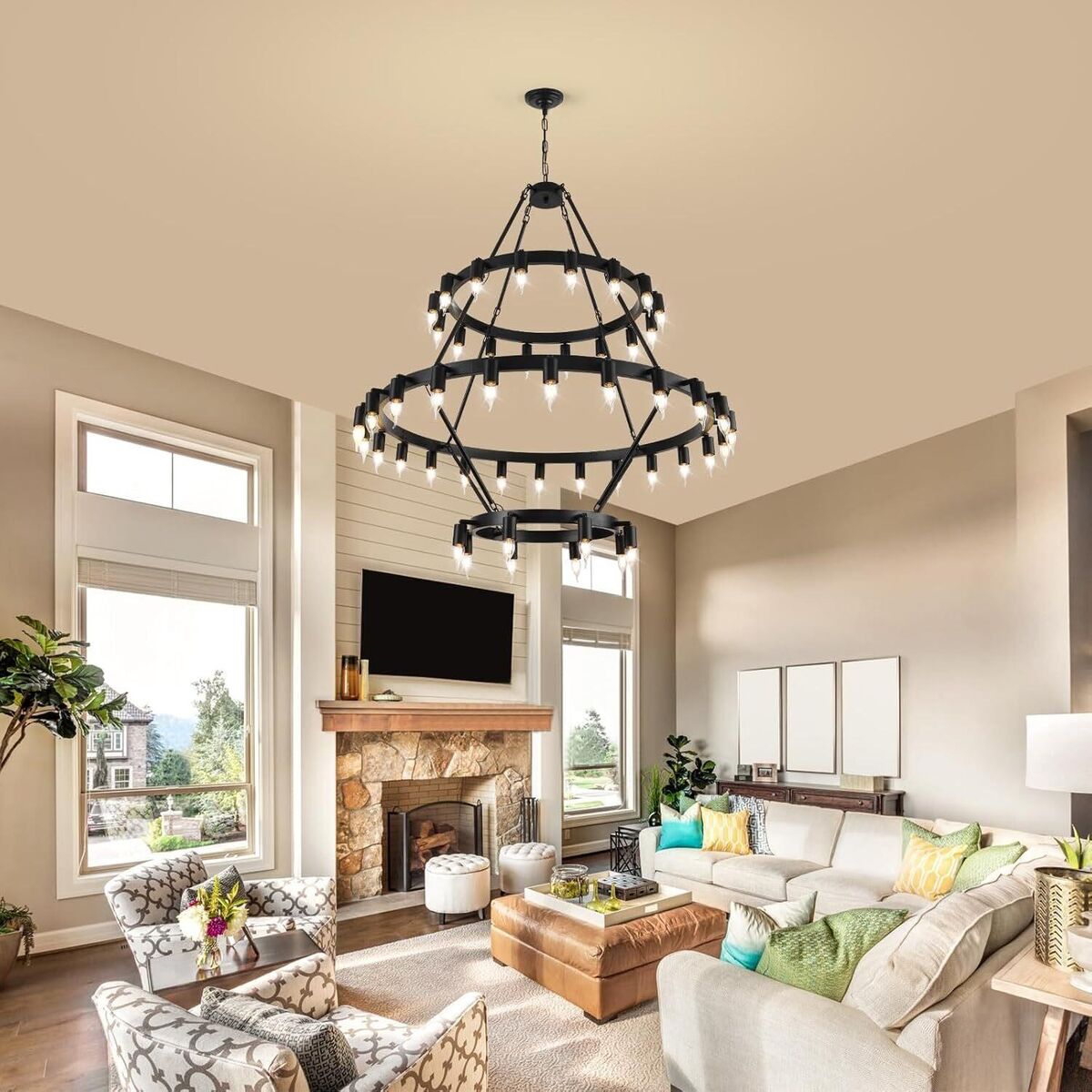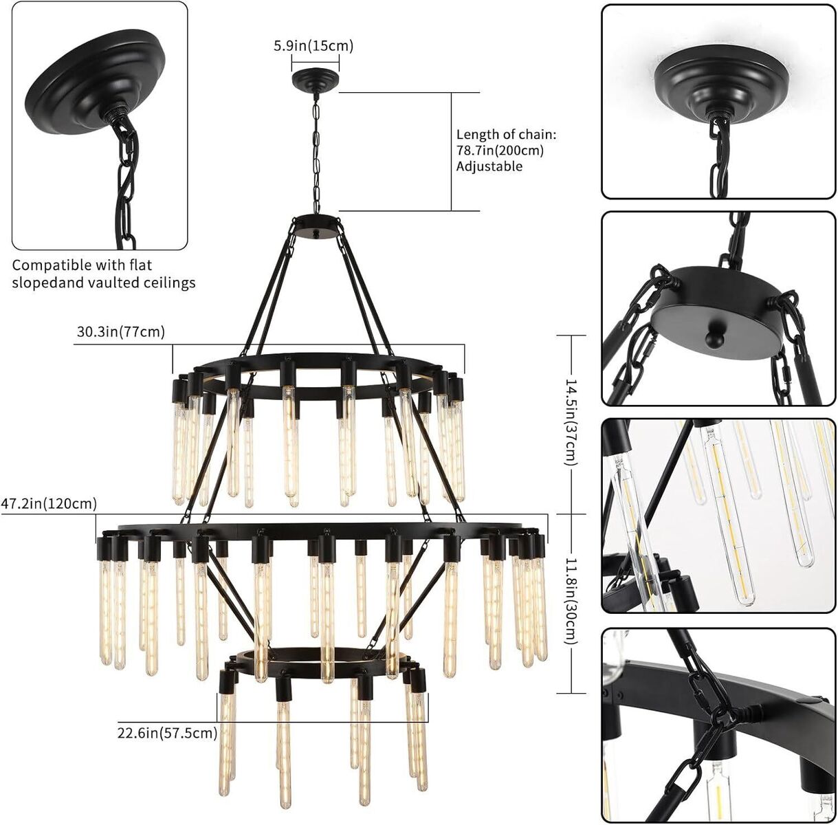 Venmo47-Inch 3-T Black Wagon Wheel Chandelier Retail Price: $399 Condition: New Factory Sealed Damaged?: No In Packaging?: Yes Missing Parts?: No Brand: EPPARA Model: Black 3 Tier 48-lights Large Farmhouse Wagon Wheel Chandeliers : Our this classic and elegant matte black finishes wagon wheel chandelier is carefully designed to make it blend into the home environment by professional designers. The distinctive and eye-catching design of wagon wheel pendant lighting makes them an ideal centerpiece for any room. Versatility of high ceilings chandelier : It can be used in a wide range of spaces, together with living room, dining room, bedrooms, kitchen, and entryways. The new design concept allows the lamp holder to rotate 360 degrees, and the bulb can be placed upward, downward, or horizontally to meet various occasions. Large Farmhouse Rustic Chandelier Bulb Requirements E26x48-Light design provides 360 light coverage with a maximum 40W bulb (not included) making it the perfect addition to a dining area or front door entryway. Compatible with a variety of bulbs such as incandescent, LED, CFL and halogen bulbs. EASY INSTALLATION This farmhouse chandelier for dining room comes with complete mounting hardware and detailed installation instructions that will save you money and time! (Please cut off the power before installation). Safety : EPPARA farmhouse chandelier has passed UL certification, met the highest quality standard and safety rating available in lighting. #235m 6-14-25 05.61