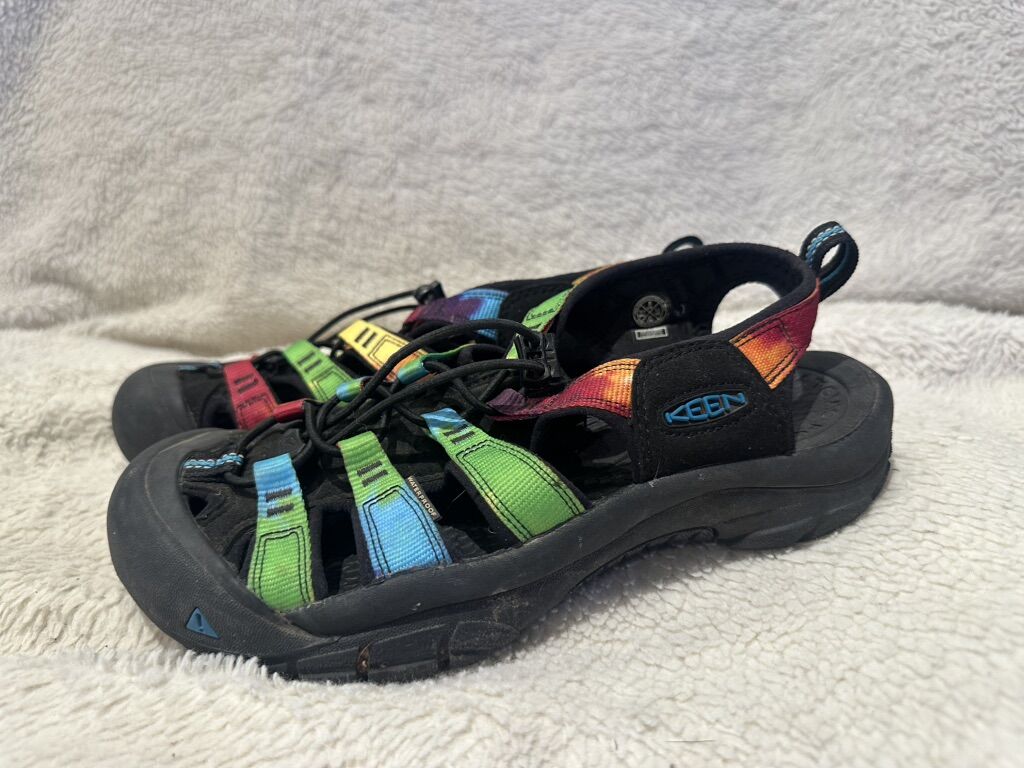 Keen women’s size 8 black with rainbow colors waterproof hiking sandals in lightly used condition. See photos for details. I take cash or Venmo, but cash is preferred. Text is best. 801-201-4446. Check out my other ads for additional sizes and styles.