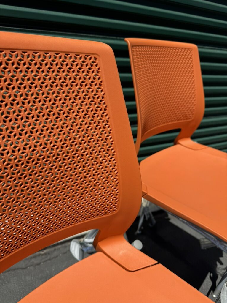 4 leg wire and rod chair, counter and bar stools Contemporary design Exceptional support and comfort Fully upholstered, upholstered seat or plastic 14 plastic shell colors 3 frame finishes with matching arm pads Left or right folding tablet arm in 2 finishes Built-in pull handle Clean-out space 4-leg plastic model stacks 6 on the floor; 8 on the optional cart Wire frame plastic model stacks 8 on the floor; 15 on the optional cart 300 lb weight capacity.