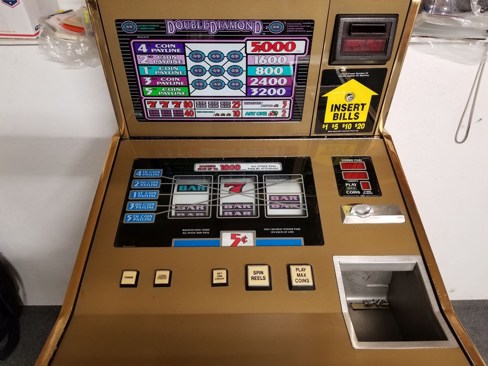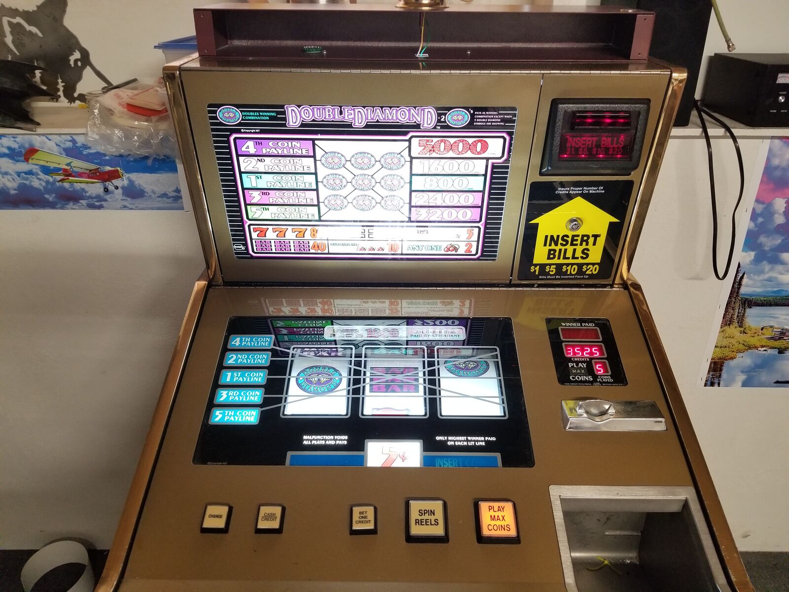 Double Diamond slot machine. Great machine, works perfectly. I will deliver within the Salt Lake Valley, since this is so heavy and big. I believe this is a bonus to the slant top machines. It works perfectly. Does not need repair. Thanks, though.