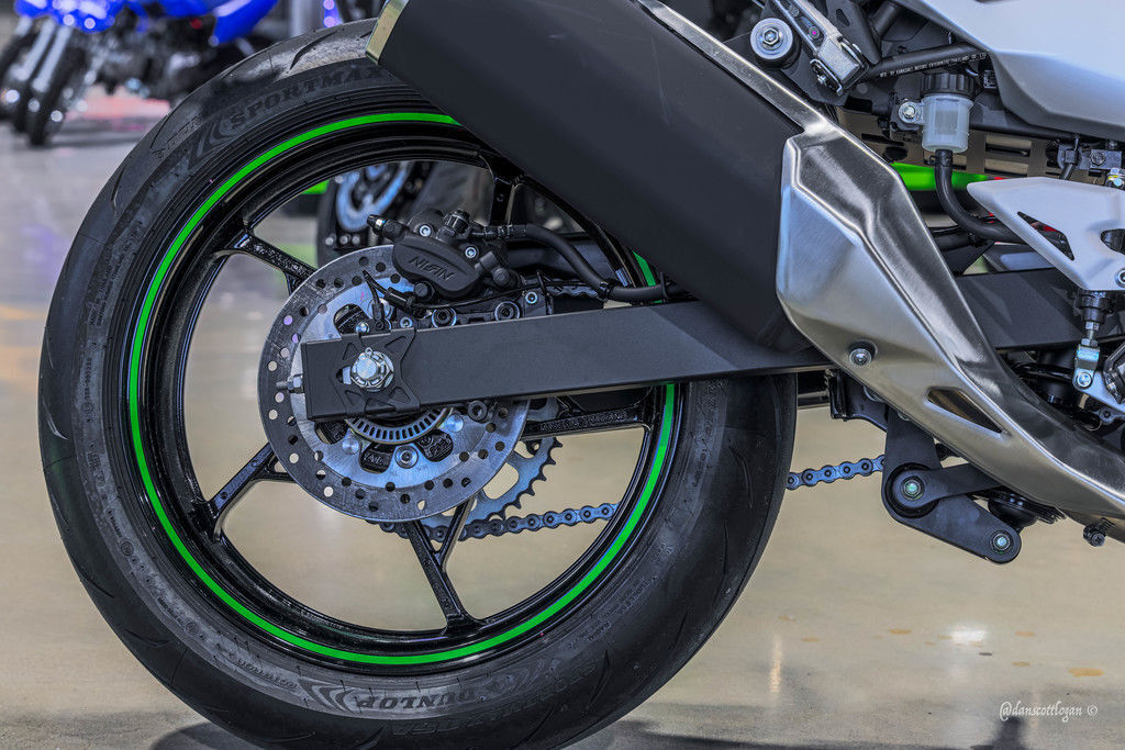 Inspired by conventional sport motorcycle chassis design, all the components of the hybrid power unit (ICE, traction motor, battery pack, ISG) are carefully arranged in a lightweight trellis frame to achieve the light, nimble handling that Kawasaki sport motorcycles are known for.