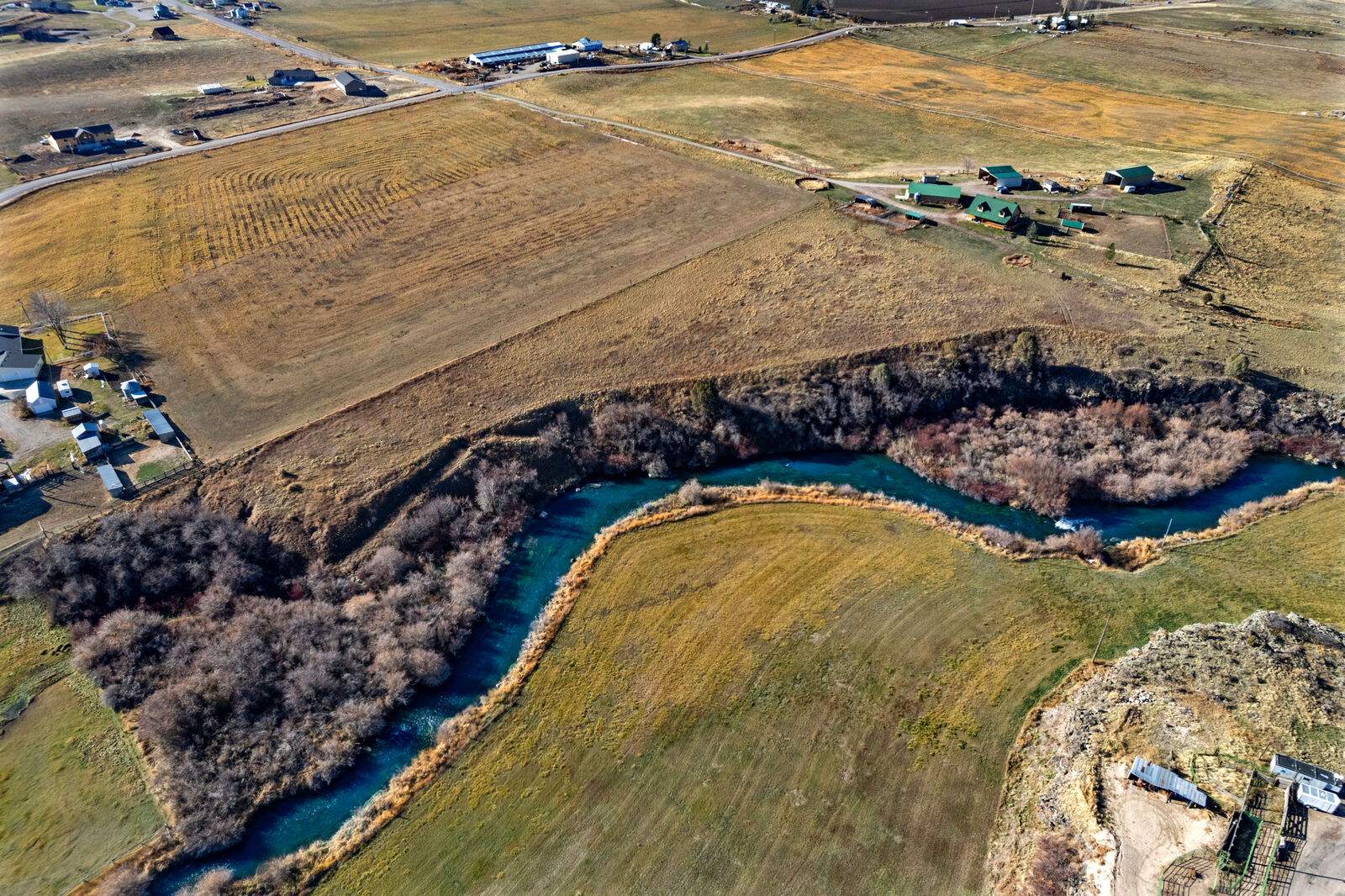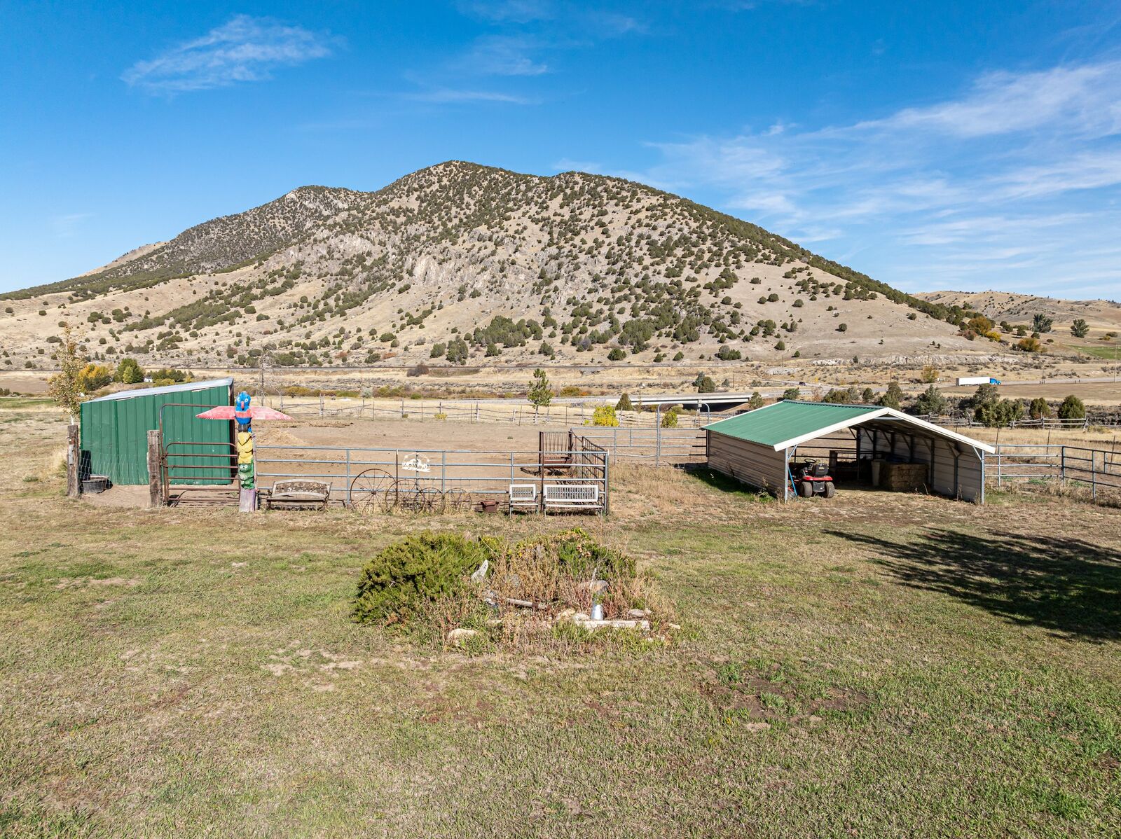 Outside, the property is fully equipped for horses, livestock, or hobby farming with barns, a round pen, hay storage, corrals, and irrigated pasture. The land borders the Portneuf River and fronts Highway 30, offering rare accessibility and multiple use options — whether you want to expand your operation, build additional structures, or simply enjoy wide-open views.