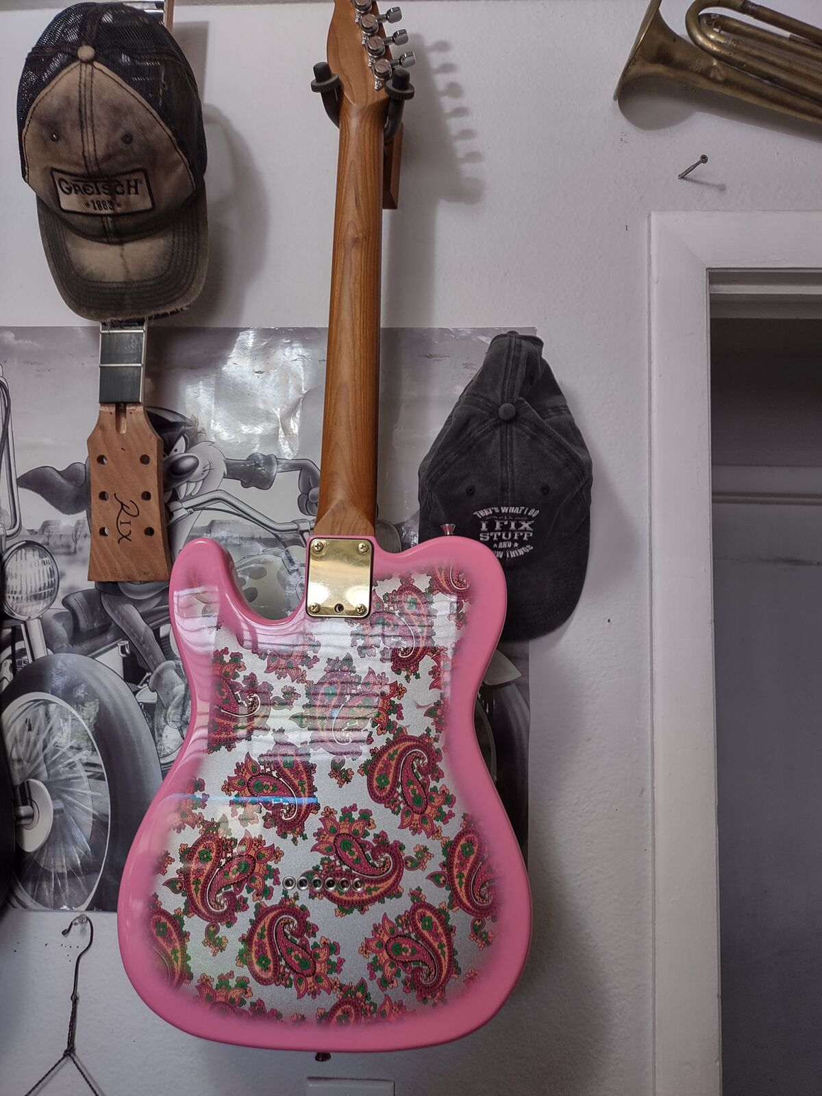 PINK PAISLEY PAINT OVERWOUND PICKUPS...NECK SLANT DEVICE