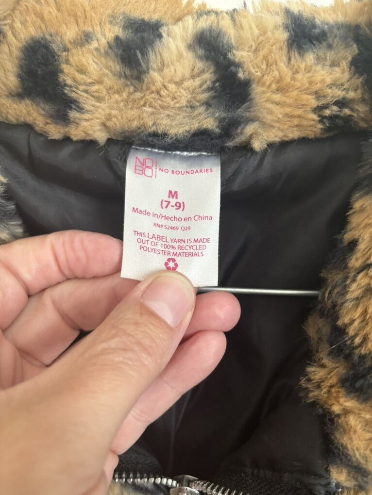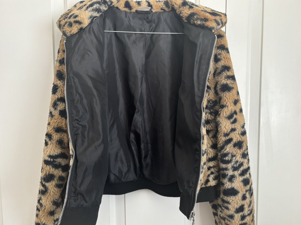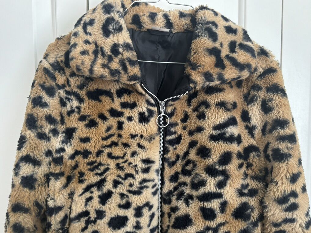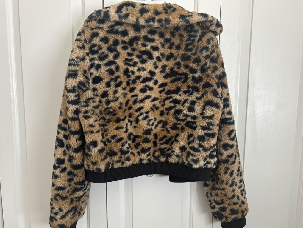 No Boundaries Junior Clothing Leopard Print Faux Fur Zip-Up Jacket S: M 7-9