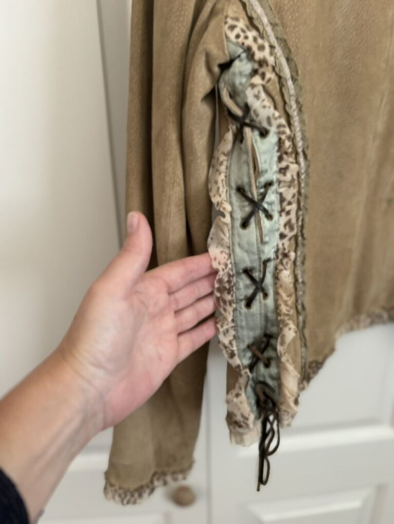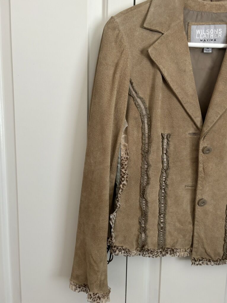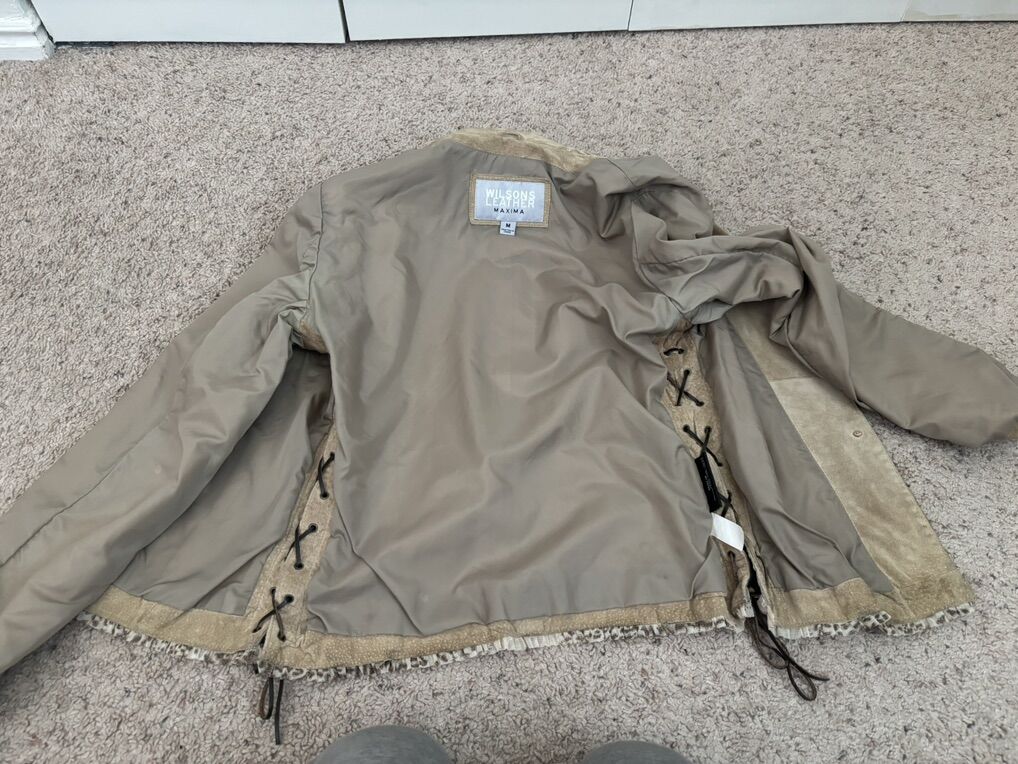 VenmoWilsons Leather Women's Maxima Clothing Ruffle Button Down Jacket S: M Outer shell: 100% Leather Lining: 100% Nylon