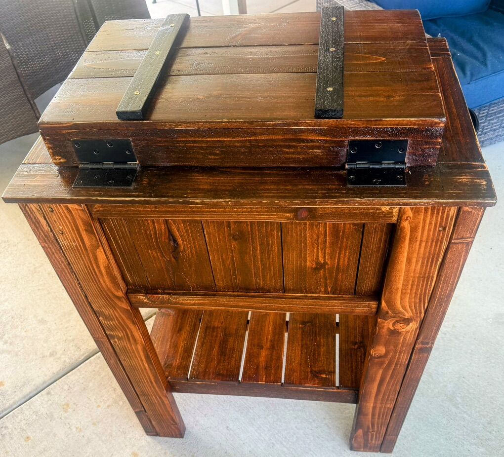 VenmoCooler was custom made for an event, but was never used. Wood was sealed for water protection, has bottle opener, bottom shelf for storage and side handles.