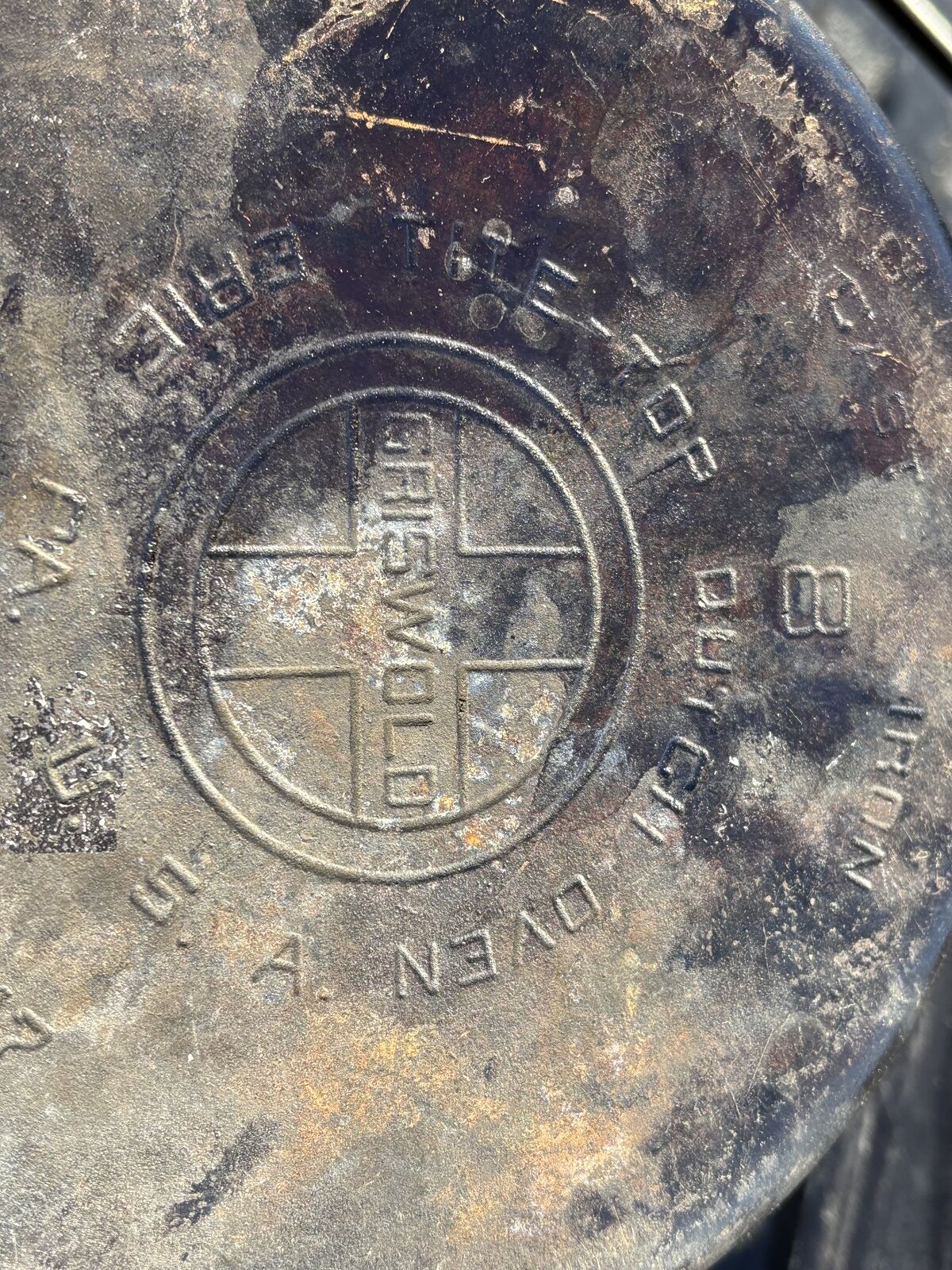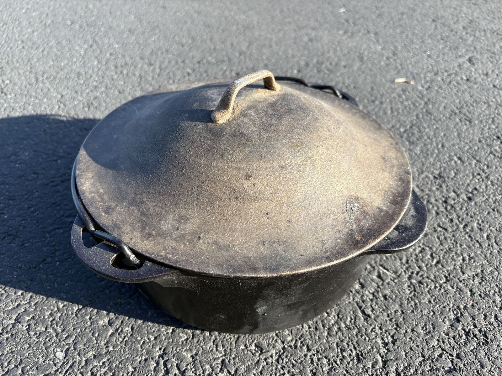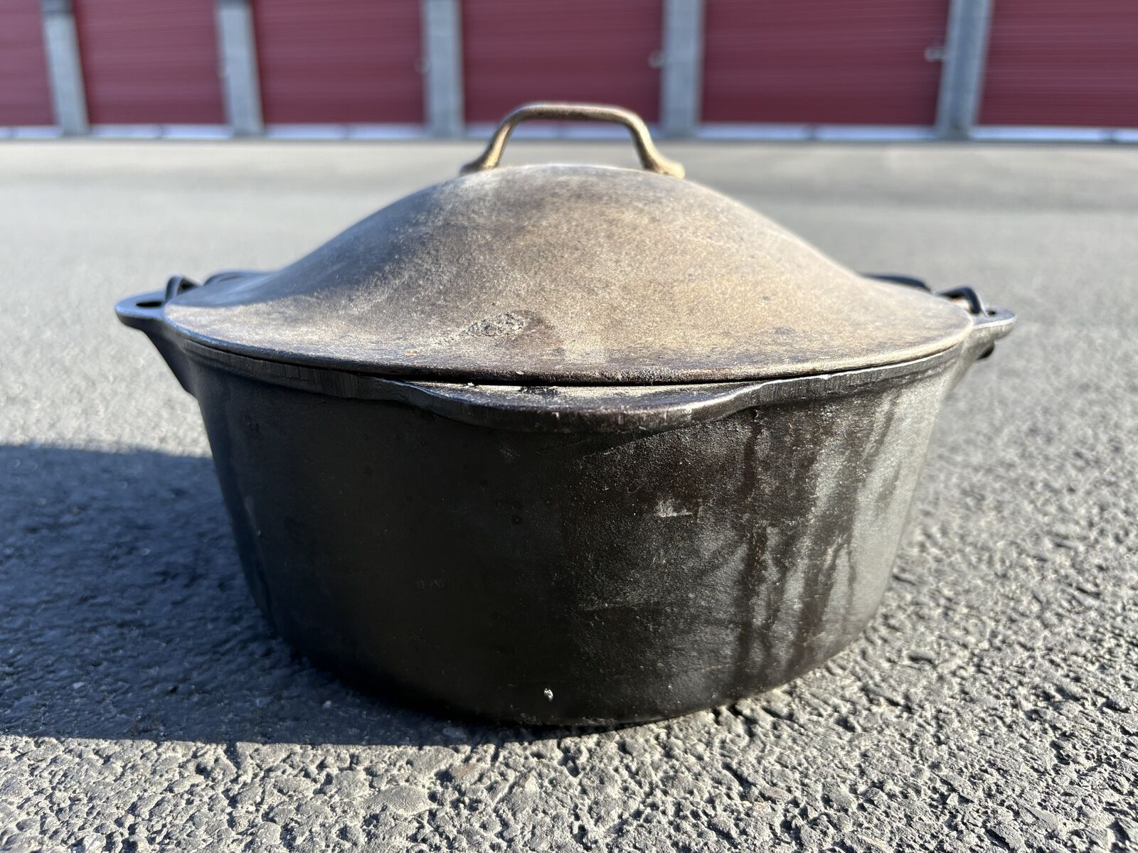 VenmoBeautiful antique Griswold Cast Iron 8 Tite Top Dutch Oven w/ Lodge Hammered Lid USAMade