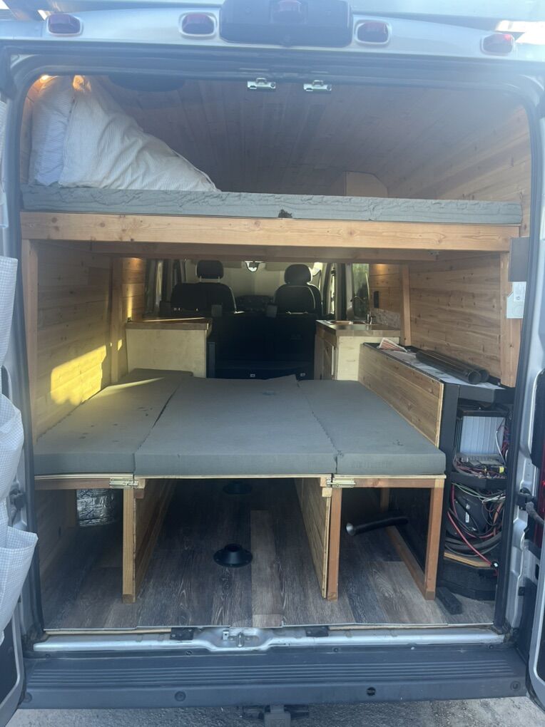 ApplePayBuilt out 2015 Ram Promaster 3500. We’ve had a great time with this van but the family has outgrown it. The build was completed in 2021. 400 watts of solar on the roof. Ac gets 2 hours of runtime off batteries. Espar diesel fired heater for those cold nights. LED lighting throughout. Quiet roof vent. Electric pump for sink that has 7 gallon jug of water beneath. Noco genius battery charger for topping off with generator or line power. 2000 watt dc to ac converter for running microwave and one ac outlet. Come check out your next adventure van without spending $100k plus!