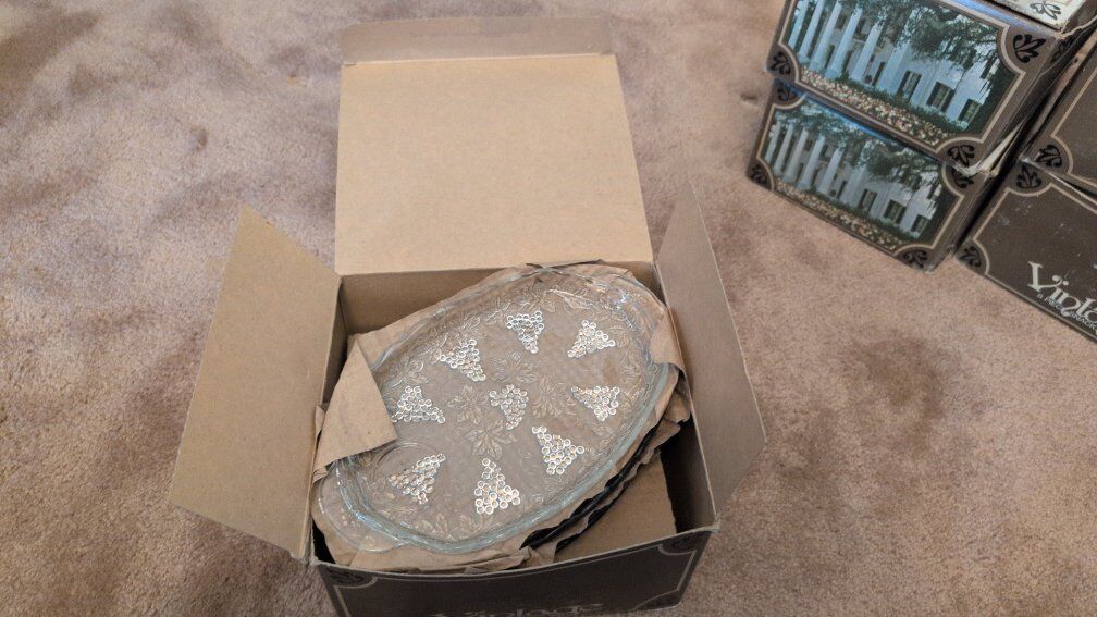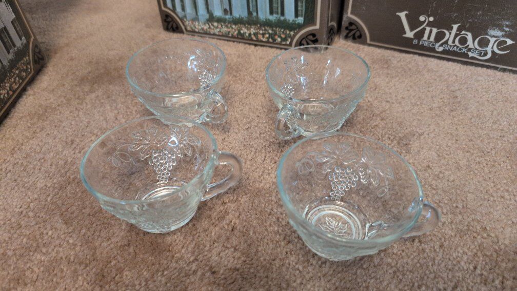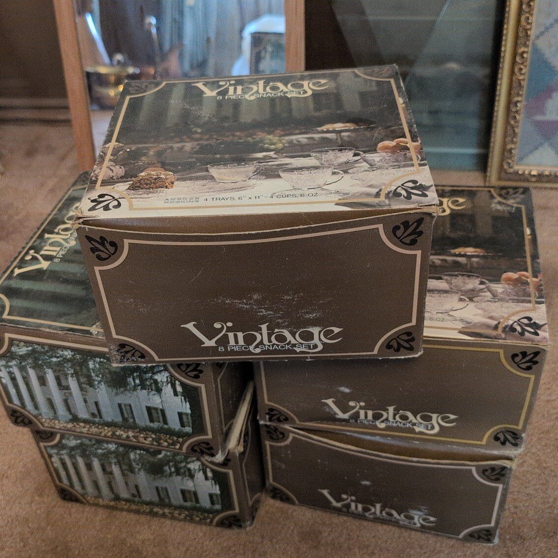 VenmoThis is a Vintage Anchor Hocking 8 Piece Glass Snack Set in its original box.