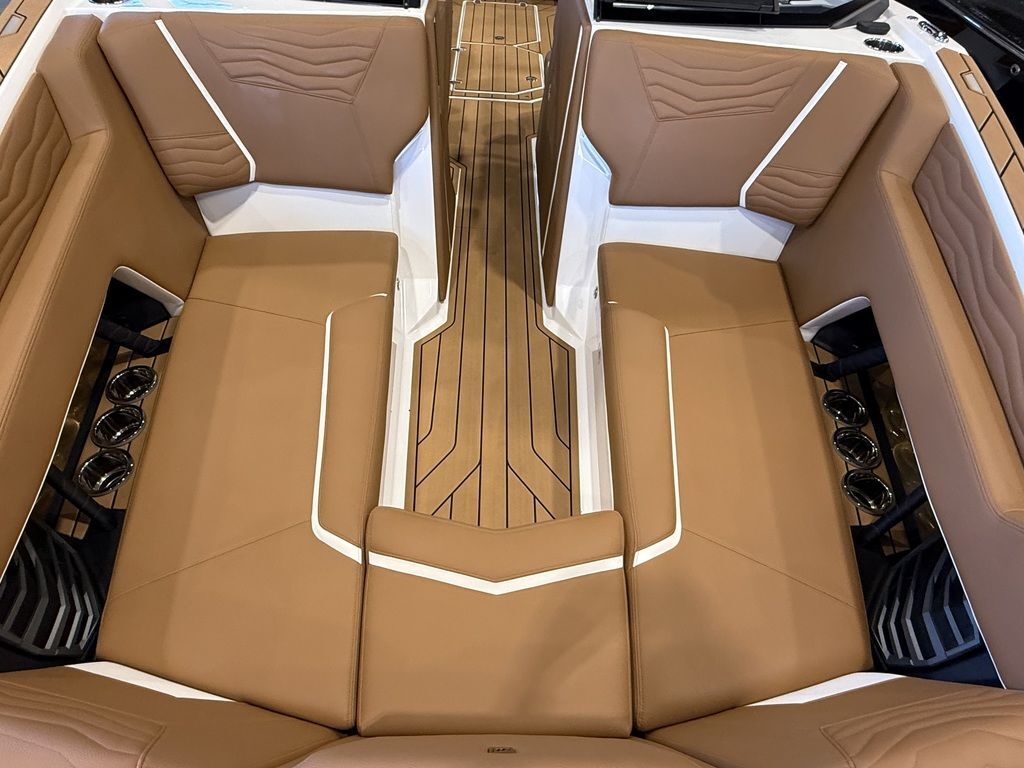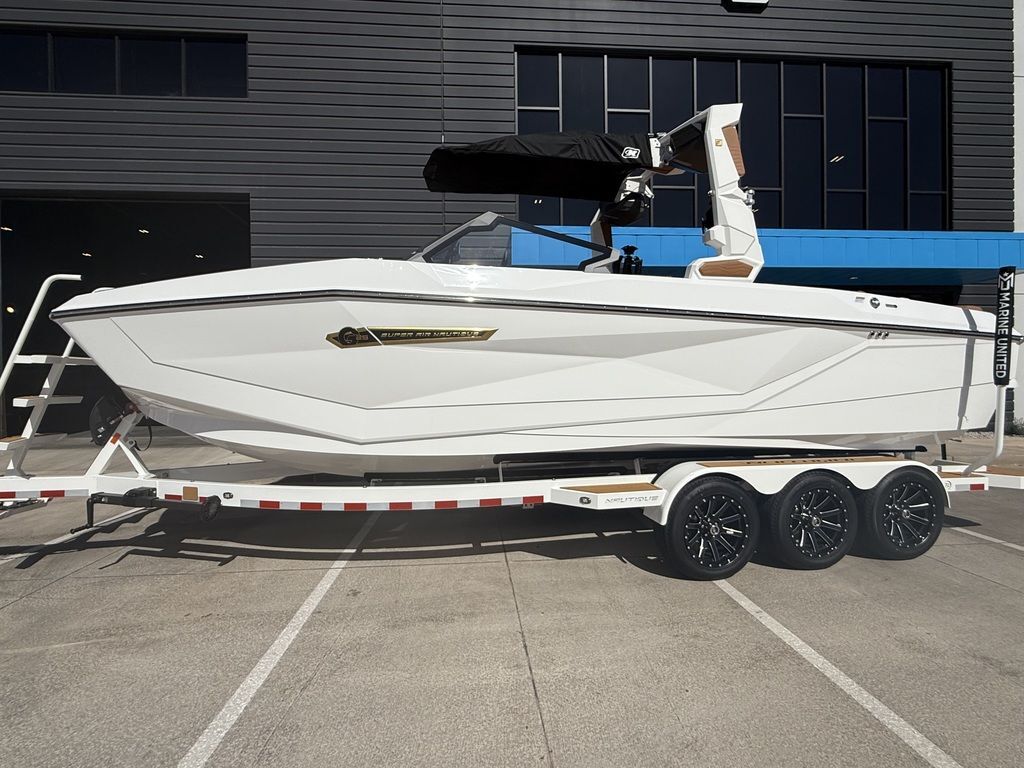Options include: 630 HP ZZ8S, Strapless board racks, Dual tower speaker housing with JL 880x (4), Maps, Battery maintenance system, Cover and platform cover, Supplemental ballast, Heat and defrost, Enhanced courtesy lighting, Nautique steer assist, Phender pro fender attachments, Surf select with surf switch, Wireless charger, Actuated helm seat, JL audio studio elite with wave front stereo, Pocket door air dam and triple axle custom Boatmate trailer. 2025 Nautique Super Air Nautique G25Unleash Your LimitsBe prepared to experience the legend of the G-Series with the all-new Super Air Nautique G25. With a large-scale lounge for spending time with family and friends or for watching all the action behind the boat, the completely redesigned G25 is ready to tackle the largest crews for summer. With a sleek new look, this beautifully crafted wake boat blends innovation and performance perfectly to provide lifelong memories for you and your crew.Features may include:EXTERIORTRANSOM SEATINGWhen it’s time to kick back and relax, check out the rear transom seats aboard the Super Air Nautique G25. Adjacent to the swim platform, these rear-facing seats allow you to spend time with family and friends while they are in the water.DOCKING LIGHTSTaking visual cues from the Paragon models, the G25 boasts brand new, ultra-bright LED docking lights that are sure to turn heads. These light arrays are utilized as docking and daytime running lights, providing great visibility when maneuvering into your dock or slip at night and a stunning, unique look during the day.HULL DESIGNThe Super Air Nautique G25 is a continuation of the signature Nautique aesthetic, bringing together the overall look and feel that the Ski Nautique and G23 Paragon have taken to the line-up. The sleek lines, faceted hull sides, aggressive styling and timeless Nautique looks command attention wherever you go.INTERIORTANDEM SPOKE LEATHER STEERING WHEELUpgrade the steering wheel on the G25 to our Tandem Spoke Leather Steering Wheel. Hand-stitched and made in Italy, this steering wheel option is the epitome of luxury as it provides comfort and control as you drive your G25 down the lake.REVERSIBLE STERN SEATQuickly slide out and flip up the reversible stern seat on the Super Air Nautique G25 so you can comfortably watch all the action. When it’s stowed away, it also acts as a lounge seat and Nauteak Non-Skid covered step to get to the back-transom area of the G25.BOWThe bow of the G25 is an amazing place to spend a gorgeous summer day. Two lounge seats with optional flip-up armrests on either side complete this comfortable place to lounge. Flip up the seats for storage underneath, utilize the cup holders in various places and let the JL Audio® speakers keep the vibe alive with its own zone for your convenience.PERFORMANCEINTEGRATED STEERING ASSISTA thruster mounted to the stern of the G25, the popular Integrated Steering Assist option provides exceptional maneuverability. An option that’s perfect if you are docking in tight quarters, want to reverse in a straight line or are simply looking for more control on the open lake. Steering Assist allows you to quickly move the transom of the boat left or right, and significantly improves the overall driving experience.SURF PIPEStandard on the Super Air Nautique G25 is our Nautique Surf Pipe. This takes the steam and emissions from the engine down into the prop stream to bubble up behind the surfer, so you always have a great experience while you ride.