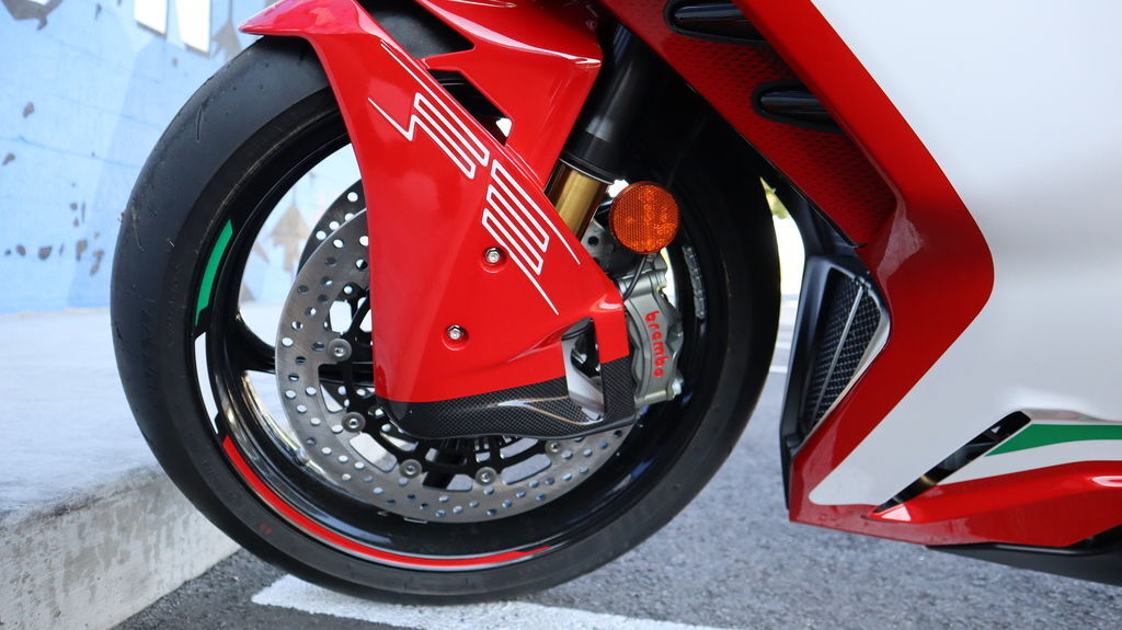 Wind tunnel developed winglets are seamlessly integrated into the F3 RC bodywork, generating downforce at speed while preserving MV Agusta’s signature lines. The result is a visually striking Supersport with improved stability during high speed cornering and braking.