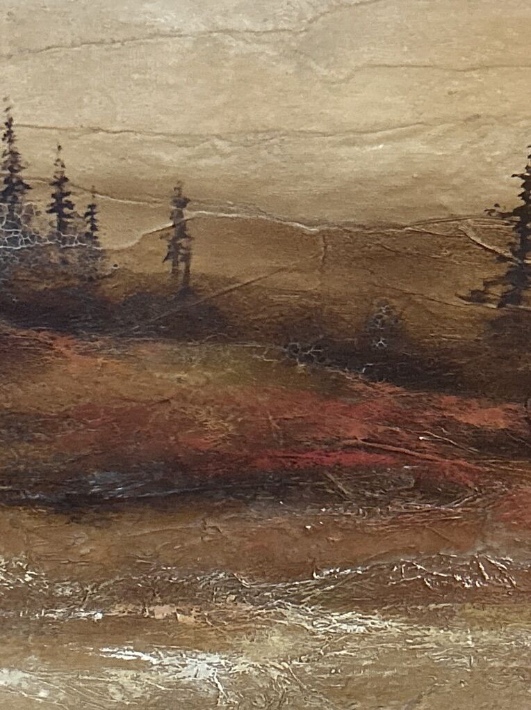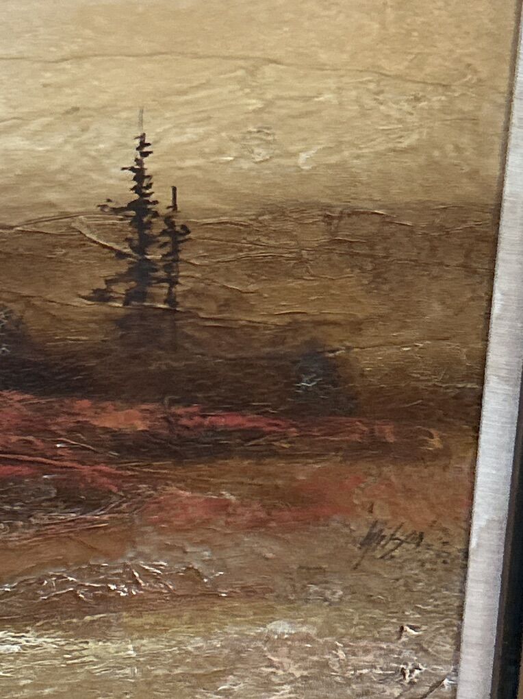 Summer Nights Landscape Painting (Egg Tempera ) paper on masonite board. Signed Wilson. 21.5”x17.5” ( Original )