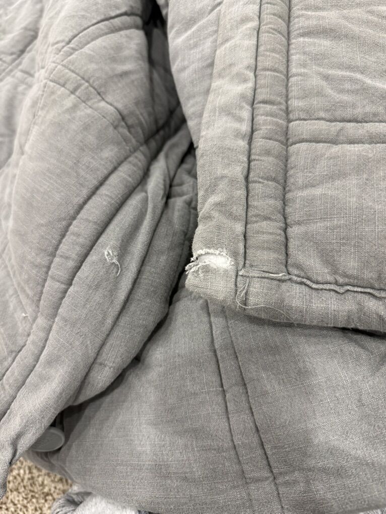 5June. Has 2 shams and 2 cases, stain area on sheet (might wash out?) and small holes as shown.