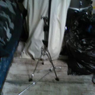 ****FIX THAT BATTERED BASEMENT/STARTER KIT: FOUR Pearl 1.6mm drum HOOPS: 12" & 14" new, 2 13" good/pitted, and 1 Gibralter 10" 2.3mm hoop new. I also have 2 lightweight Ludwig snare stands and a cobbled-together cymbal stand. You can switch the cymbal down-tube with the included alternate down-tube. That tube features a curved L-rod for use with wood blocks, etc. --Splash cymbal NOT included. These items are available, as a set only, for $40