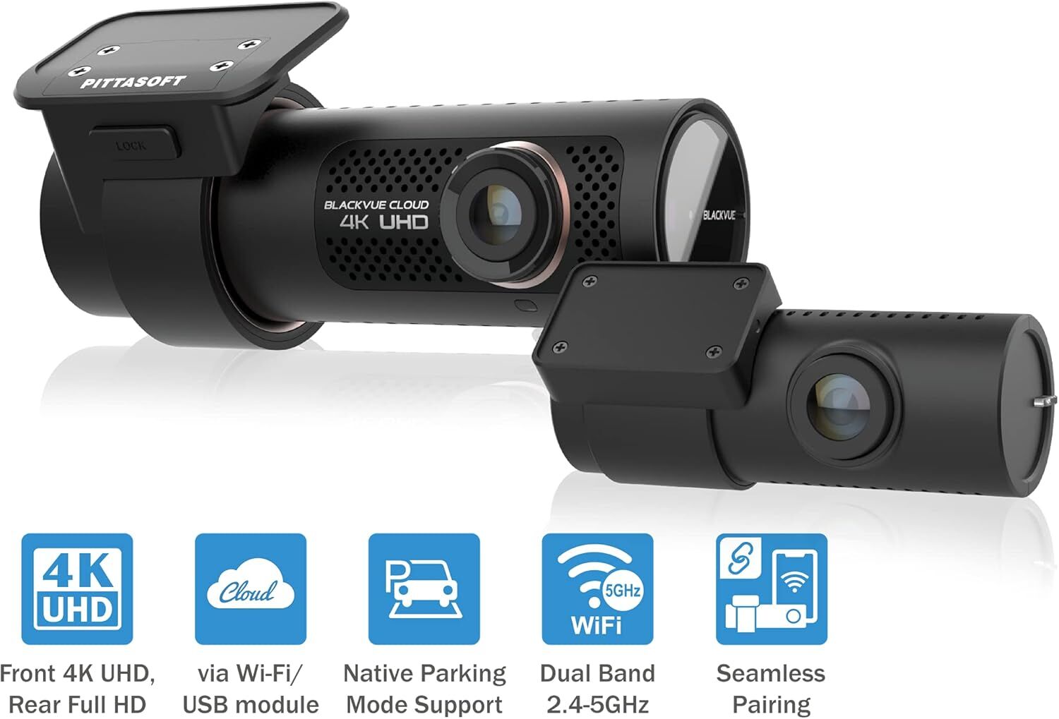 Comes with: Power Magic Battery B-124X and LTE unit for cloud storage in addition to onboard memory BlackVue CPL Filter BF-1 for Dashcam Power Magic Pro Battery Discharge Prevention Device for Parking Mode 4K/FULL HD DUAL-CHANNEL CLOUD DASHCAMCapture everything front and rear Front camera: 8 megapixels CMOS sensor recording in 4K Ultra High Definition (3840x2160) at 30FPS. Rear camera: 2.1 megapixels Sony STARVIS recording in Full HD (1920x1080) at 30FPS. The front camera’s ultra-wide 162-degree angle takes full advantage of the 4K UHD resolution. The rear camera records in Full HD at a 139-degree angle with outstanding low-light sensitivity. Native Parking Mode with built-in voltage monitor to protect your vehicle battery (hardwiring cable included).