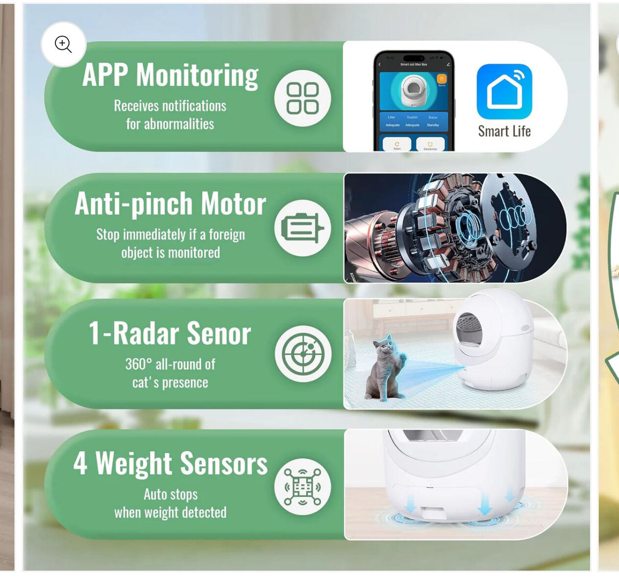 MEEGEEM Self Cleaning Cat Litter Box - 85L Extra Large Automatic Cat Litter Box Self Cleaning for Multiple Cats, Anti-Pinch/Odor-Removal Design, All Litter Can Use, with Garbage Bags/Mats0223