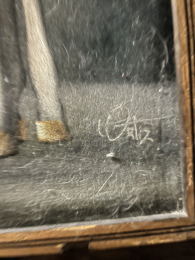 VenmoPainting maybe airbrush. It was given to me a few years back. Never hung in up. Make me offer cash or venmo. White mare with her goal. Beautiful picture. 27.75 x 40 original painting. Hand signed.. Make me an offer. Also a hand written message on the back from the artist