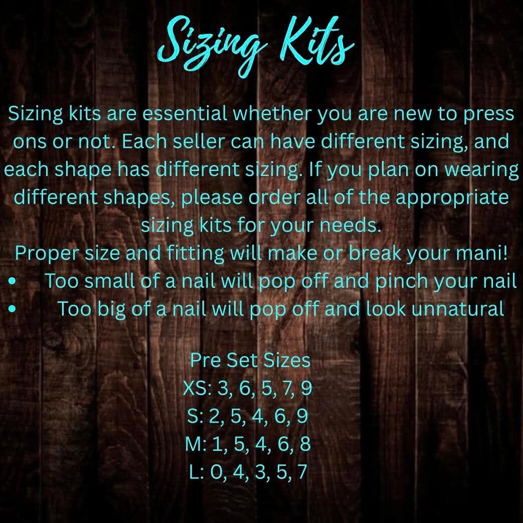Before you order you will need to buy a sizing kit that will be $10 so we can make sure that your nails will fit seamlessly! But I also have the option of pre-made sizes if you are more interested in that!