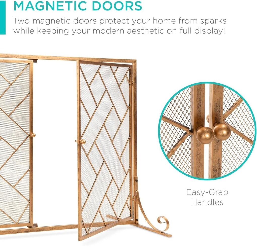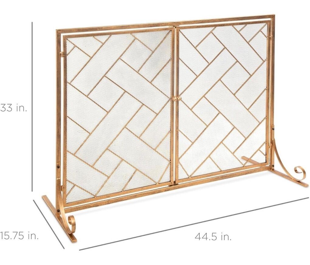 Best Choice Products 44x33in 2-Panel Handcrafted Wrought Iron Decorative Mesh Geometric Fireplace Screen, Fire Spark Guard w/Magnetic Doors - Gold
