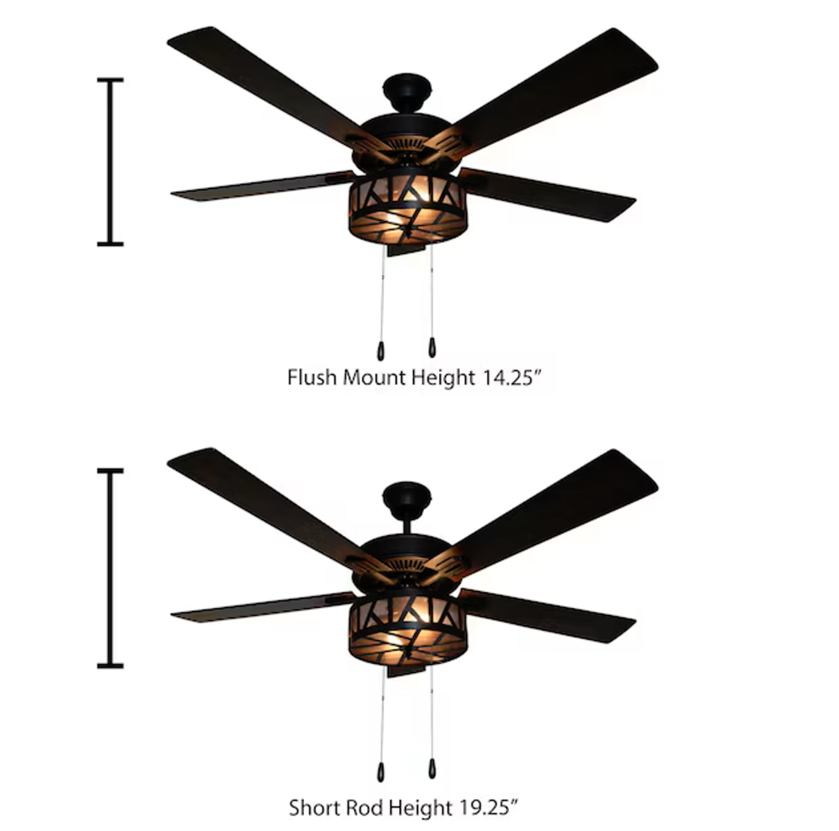 Zelle52-in Downrod or Flush Mount Oil rubbed bronze with Rich Barnwood/light driftwood Blades Ceiling Fan With Light 5 -Blade Brand new in Box Designer Fan Model 20133 or 20075