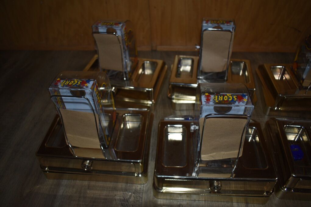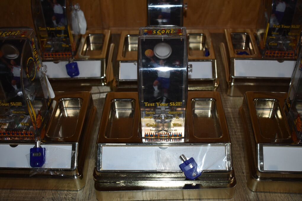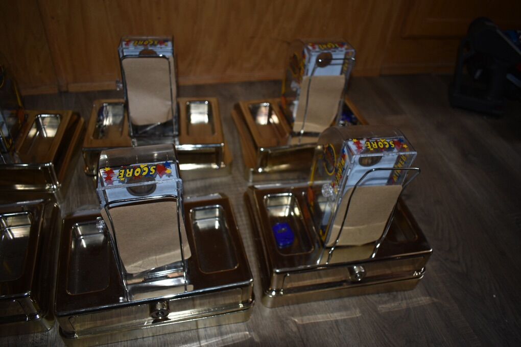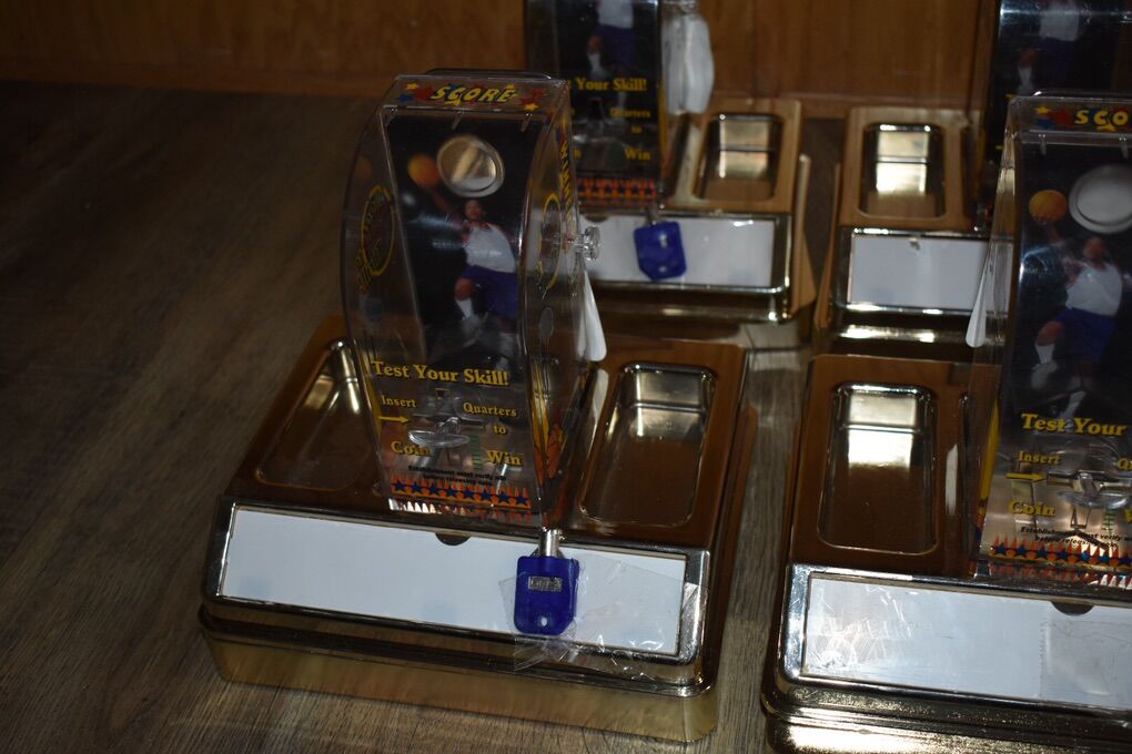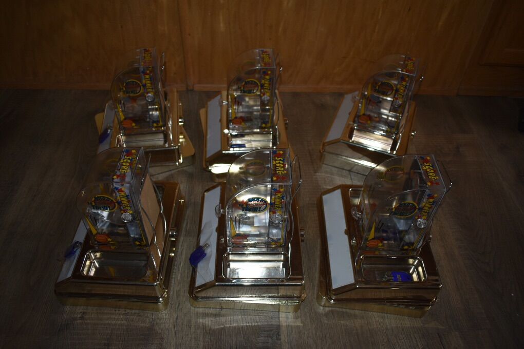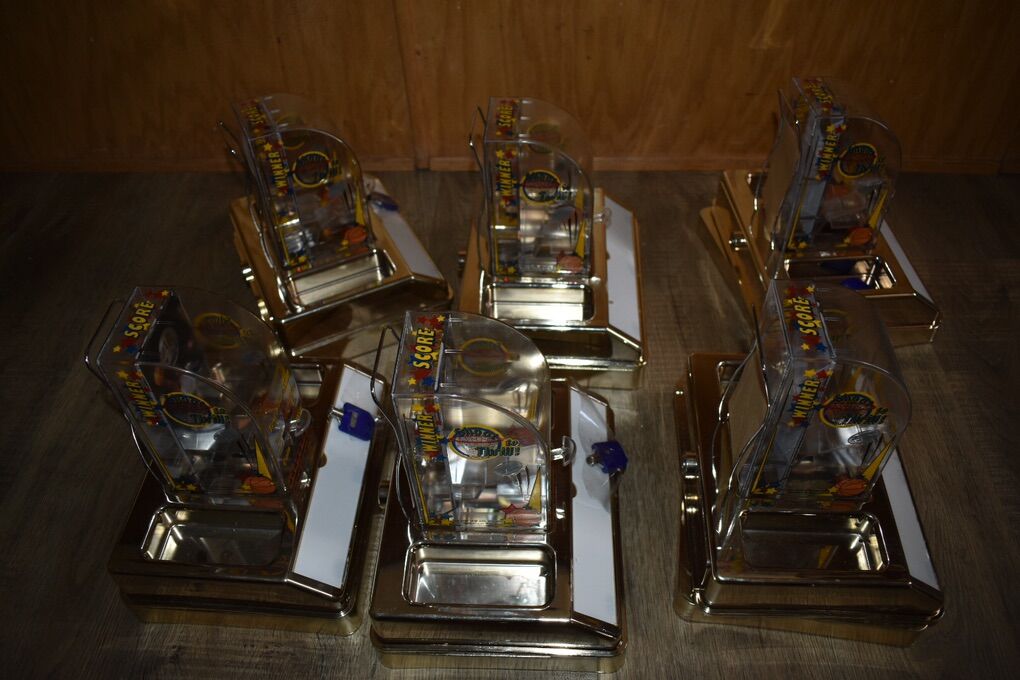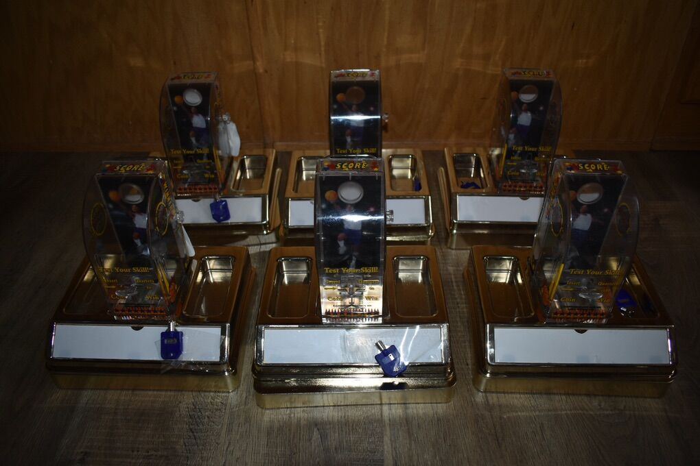 VenmoHere are six Bar or Table top skill games. Patrons can try to shot a quarter through a hole for a prize of your choice. They appear to have been never or lightly used. Only a few scratches. The advertising spot has a plastic cover that still has the white protector. Each has a key. I think they are all keyed the same. I’ve stored these too long and ready to find a new owner.