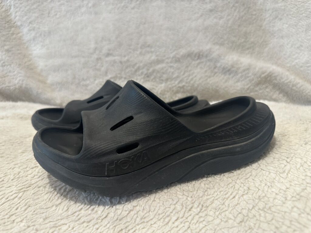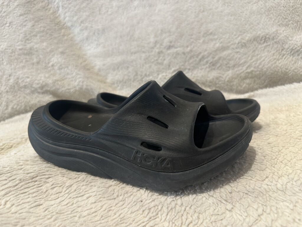 Hoka women size 6 black foam sandals. These are in good condition, see photos for details. I take cash or Venmo, but cash is preferred. Text is best. 801-201-4446. Check out my other ads for additional sizes and styles