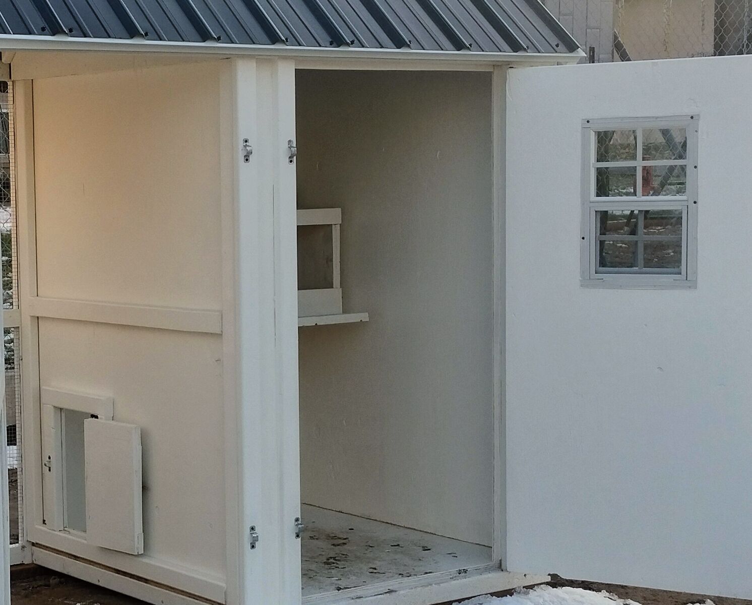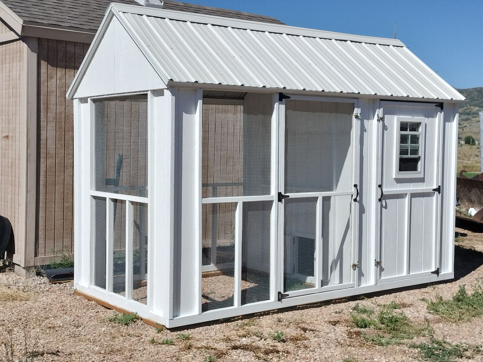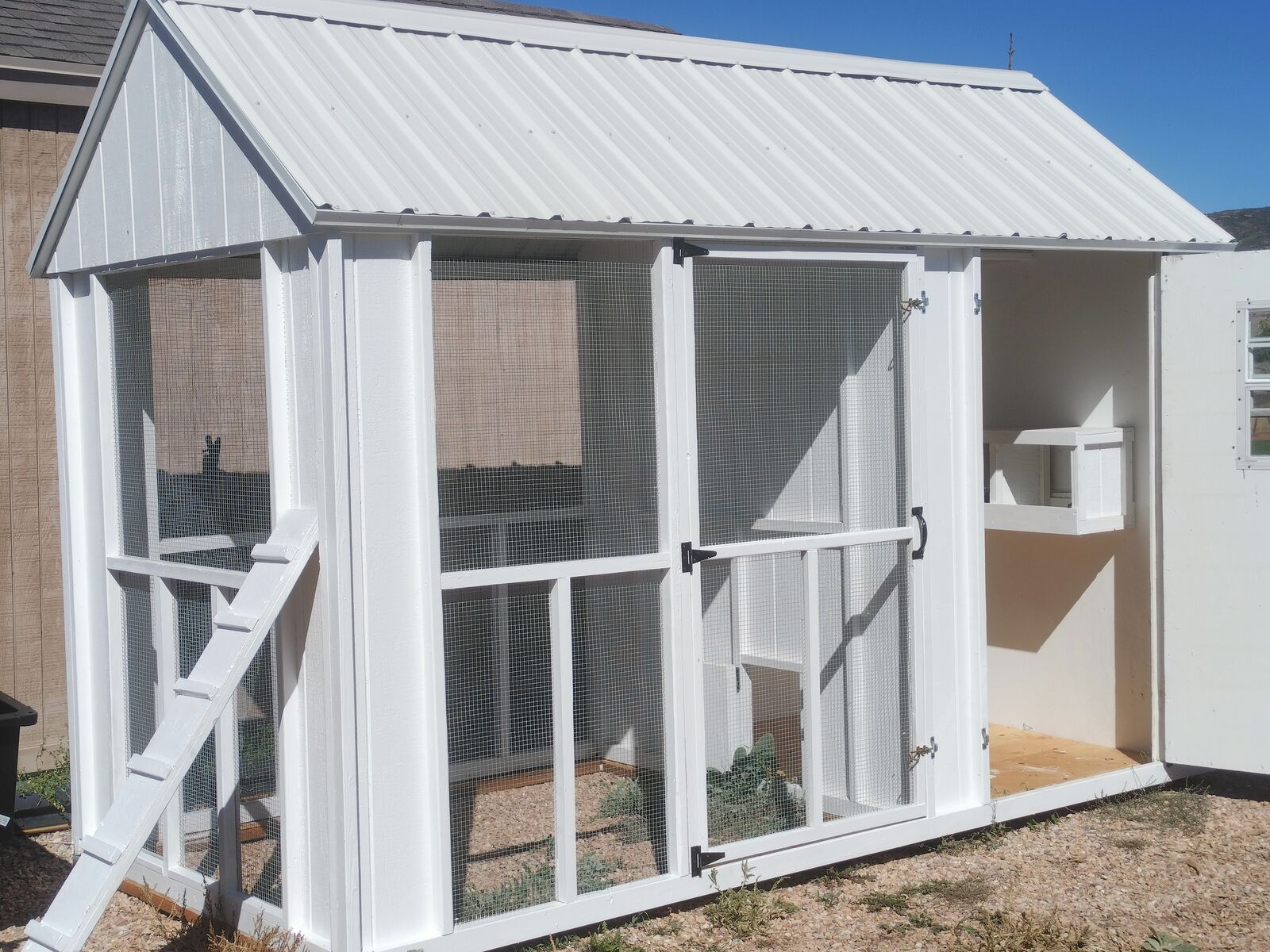 VenmoThese coops are proven to be a safe and comfortable place for your chickens ..Comes complete with 3 or 4 nesting boxes and enough roosting space for ,16 chickens .Paint and delivery included in the price ,your choice of paint colors and metal roof color