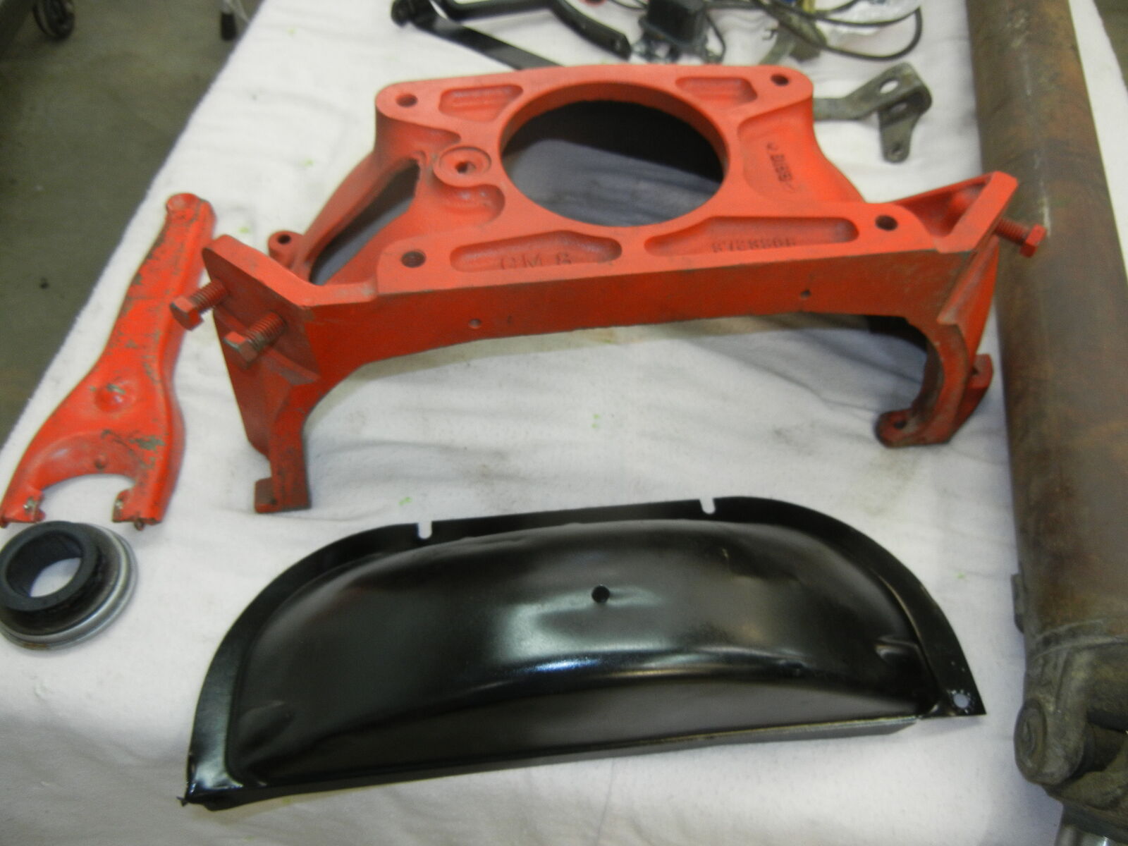 3 Speed Overdrive Transmission is Original #3845122 It has the Original Overdrive Manual cable pull as well as the electronics that hook to the Carb for kick out of the Over drive for passing Everything is Original 55 Chevy Bell-housing with clutch fork and throw out bearing Bell Crank for Clutch rod Also the original steel flywheel cover