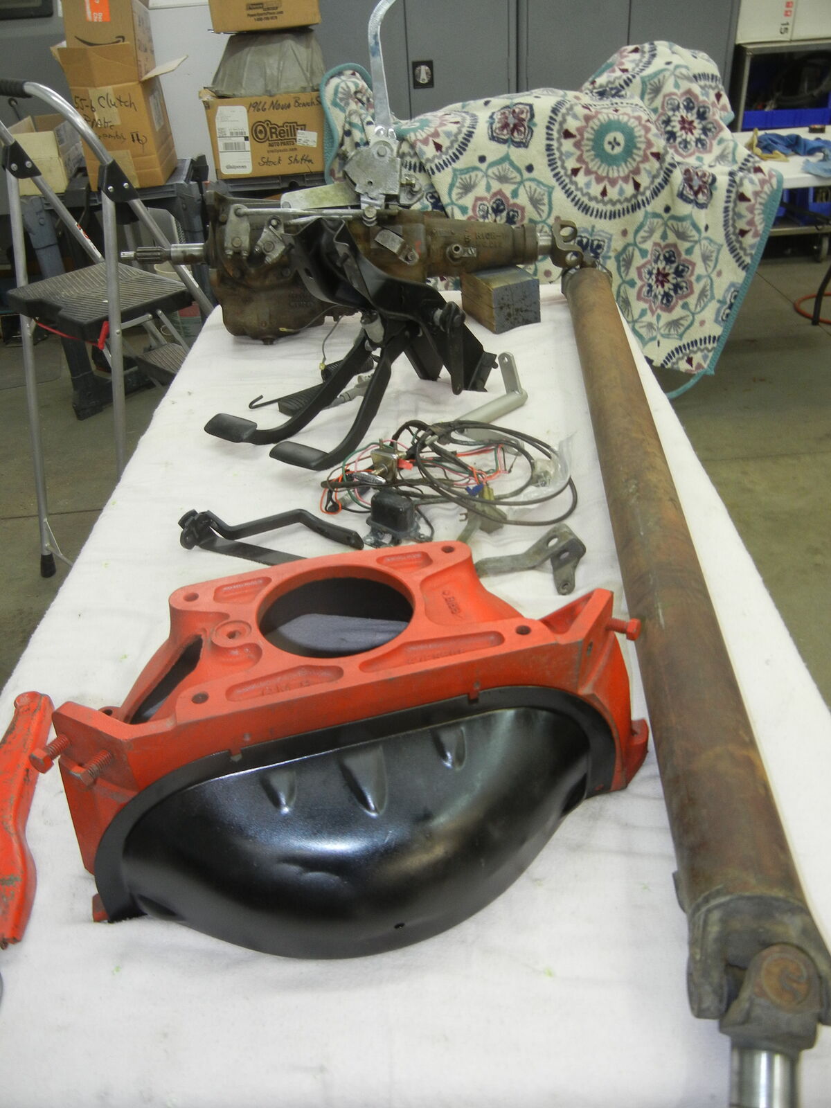 Hurst Dual Pattern shifter mounted for floor shift conversion Almost everything you need to convert to a standard transmission also comes with the stock drive shaft