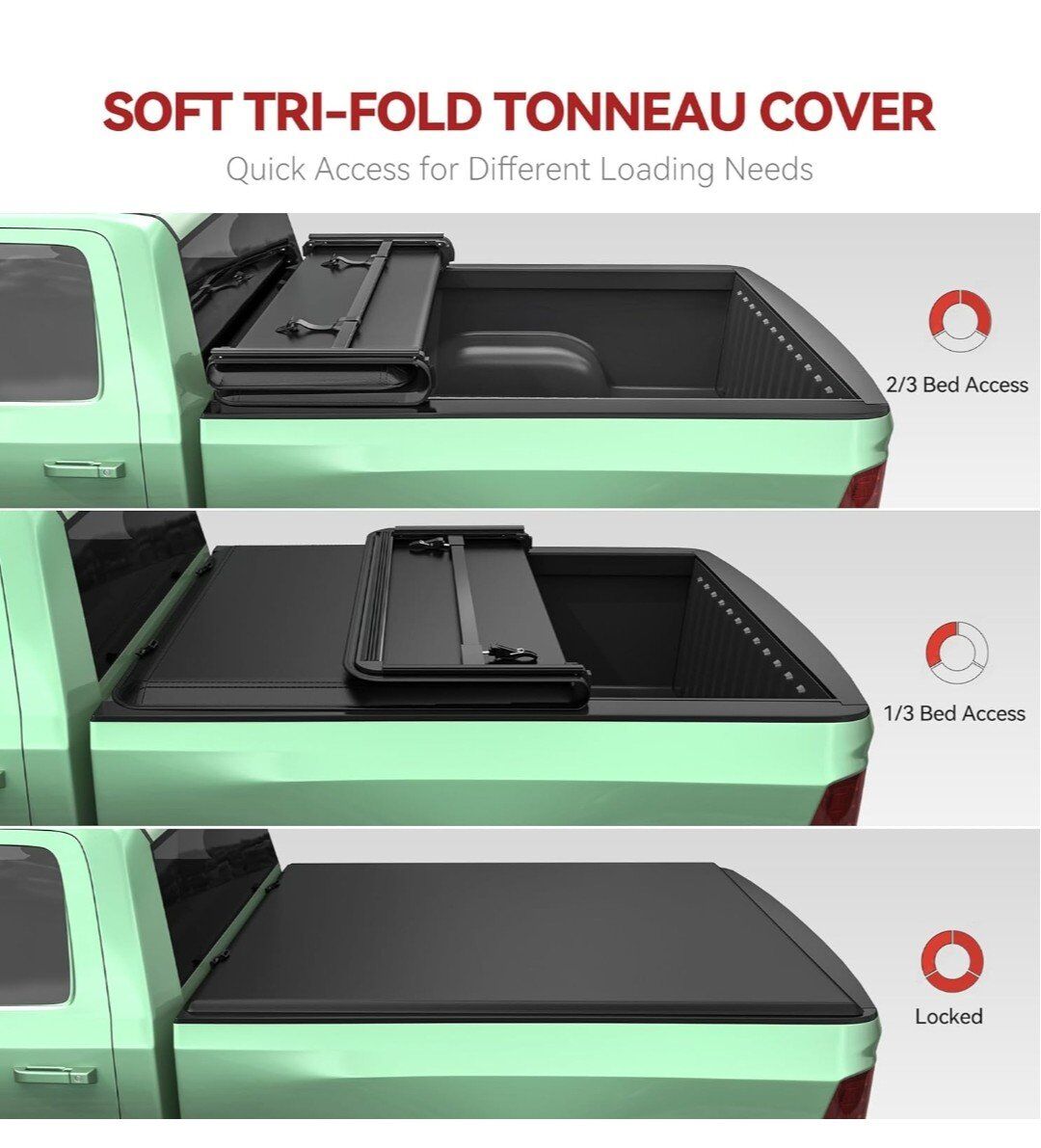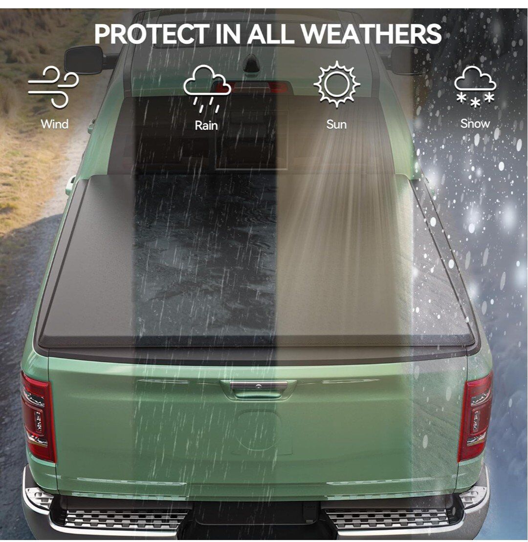 Exceptional Compatibility: Tailored specifically to fit for Chevy Silverado/GMC Sierra 1500 New Body Style 2019-2025, this truck bed cover provides an excellent fit for your 5.7ft Bed without Multi-Flex Tailgate, enhancing your vehicle's utility Simple Installation: Designed for easy installation without causing any harm to your truck. No drilling needed, and the post-installation look of your vehicle is improved, along with its protection Resilient PVC Material: Constructed from robust double-layer PVC, this bed cover is built to withstand wear and tear, promising a long lifespan and dependable protection for your truck bed Safety-Oriented Clamps: The soft folding tonneau cover incorporates specially designed latch clamps with anti-pop open features, ensuring the cover remain closed during transit for enhanced safety Improved Fuel Efficiency: The streamlined design aids in reducing wind resistance, leading to superior fuel efficiency during your drives.