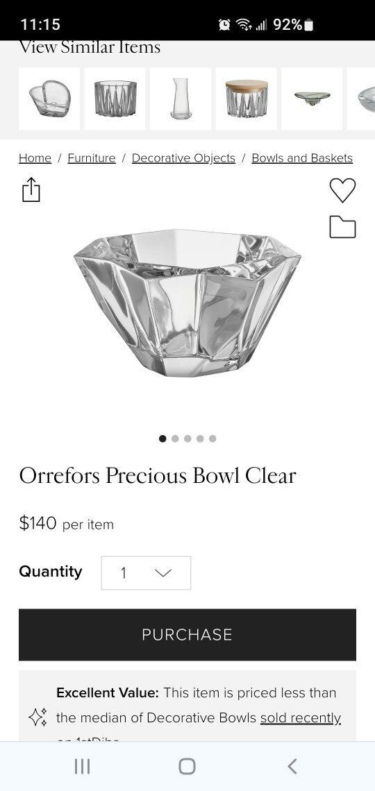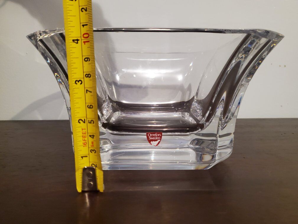 VenmoPrecious Crystal Bowl from Orrefors Sweden has an asymmetrical design that beautifully refracts the light reflected in the thick crystal. The bowl is a decorative centerpiece delivering an elegant feel to the home. Designed by Malin Lindahl.