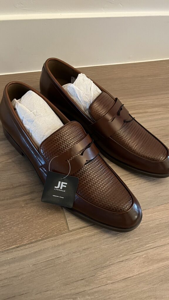 Still tied together in box, Never worn! Excellent condition, color is Cognac.