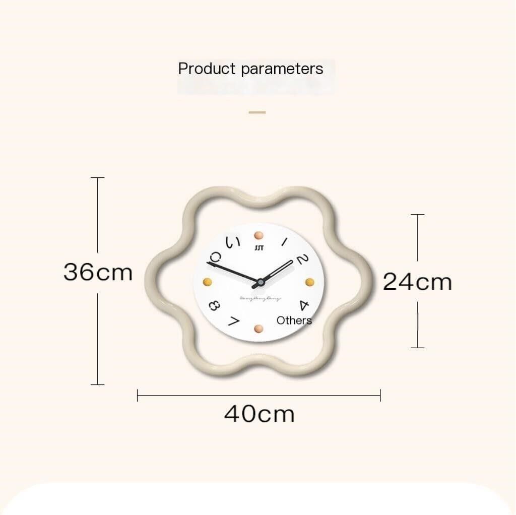 Stylish design This nordic style wall clock adopts a simple and modern design style.Beige color is simple yet fashionable, which can add a touch of fashion and modern atmosphere to the home. Suitable SizeThe size of the decorative clock is:36x40cm. The large fashion wall clock is made of high-quality frame, which is precision manufactured and .1 AA carbon battery required (not included) Silent operationThis big wall clock adopts a silent design and will not emit harsh ticking sounds, allowing you to enjoy a quiet environment. Whether in the bedroom, office or study area, it can maintain tranquility. Precise time displayThis stylish wall watch can accurately display the current time. Living room clock scale is clear and clear, and the pointer moves smoothly without delay. Easy to InstallThe wall clock comes with instructions. You can easily hang the clock in just a few simple steps. Easy to operate and can be hung anywhere.