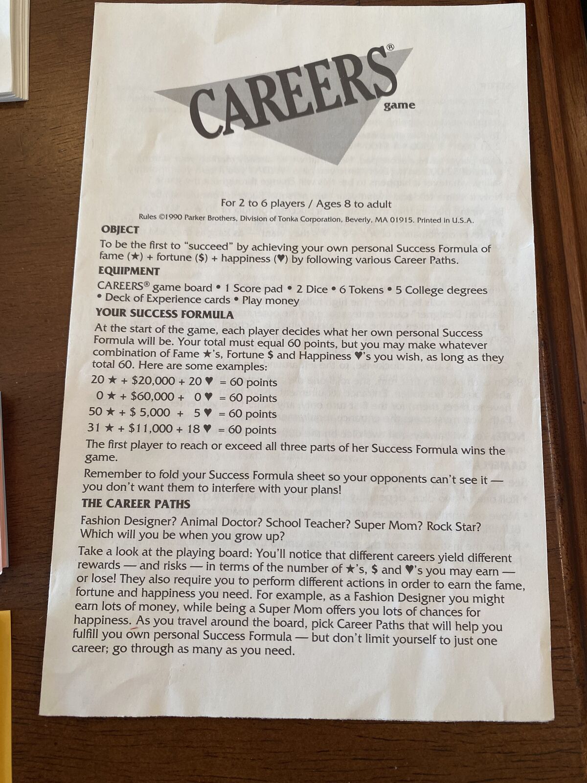 LIKE NEW - Vintage 1990 CAREERS Board Game - Looks Brand New- With Instructions - C PIX. Sells elsewhere for $36. Also, check out my jewelry listings. I have MANY JEWELRY ITEMS for Great Deals 2/$10 2/&15 2/$20 2/$25 2/ $30 2/$40 2/$50 and 2/$60. Come and see what I have.