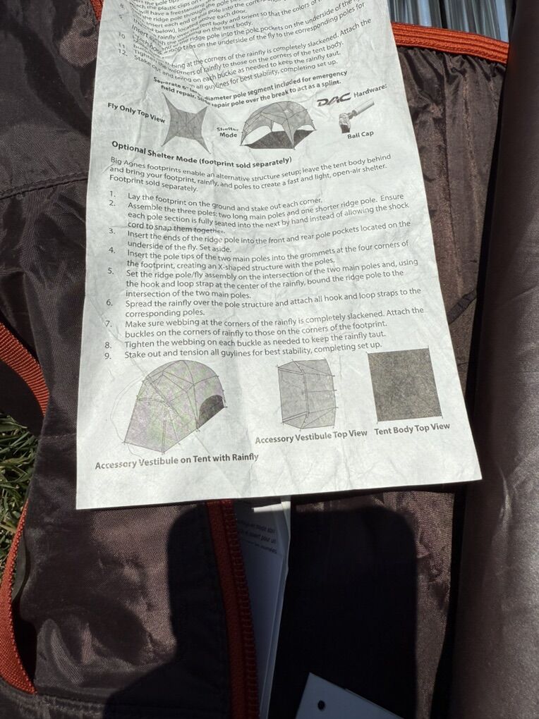VenmoI have a new, never used Big Agnes Big House 4 tent and separate vestibule that attaches to the tent. I bought it a couple years ago but have never used it. I just set up the tent to take pictures for selling it. I bought it from Big Agnes for over $700 and asking $400.