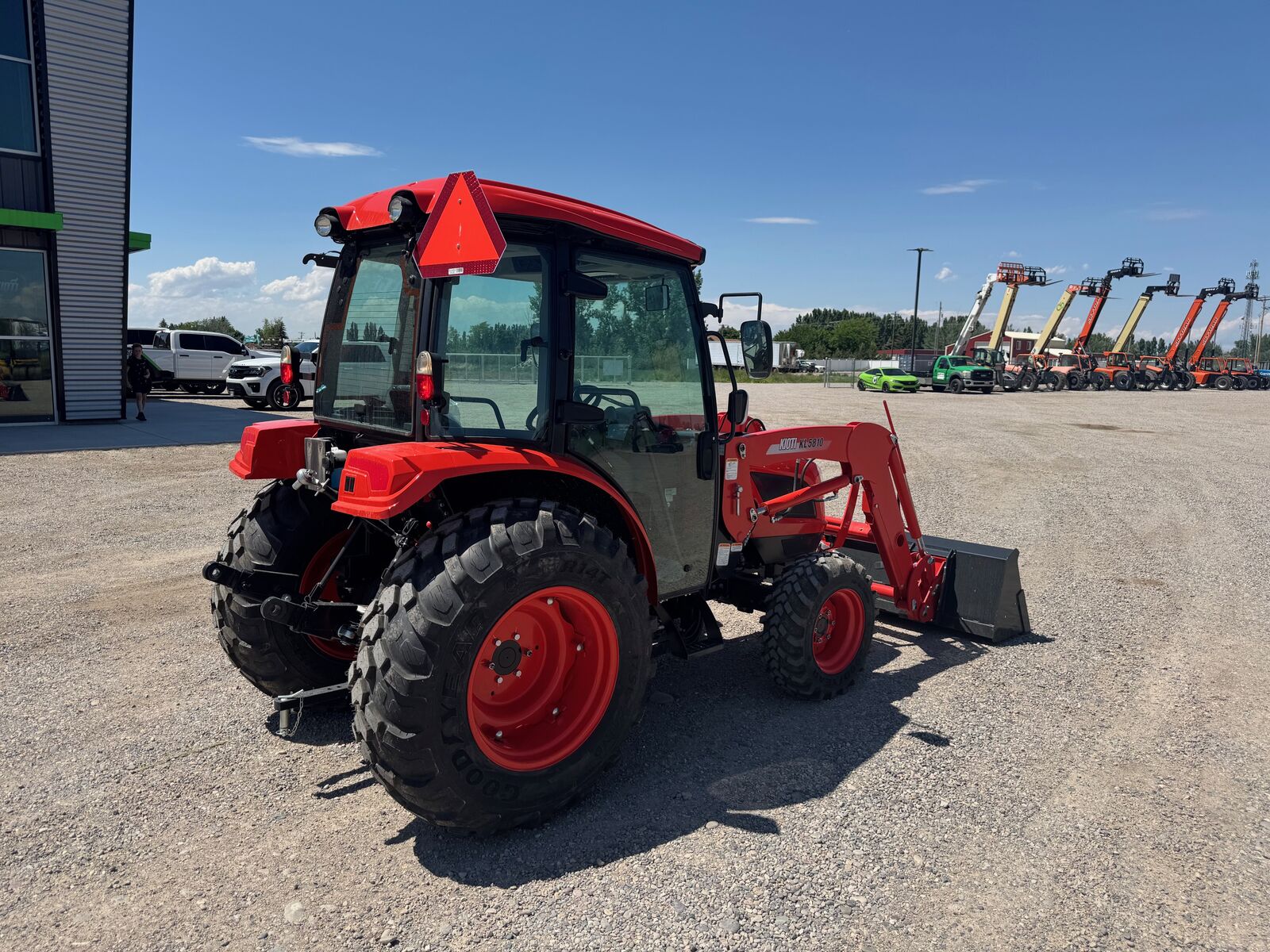 Cab Heat AC, Radio, Hydrostatic Trans, 4WD, 3 Point Hitch, 58 HP with 48 HP to the PTO, Includes KL5810 Loader with Quick Attach has 72" Bucket and Cutting Edge, 2621 LB Lift Capacity at Pivot Pin.
