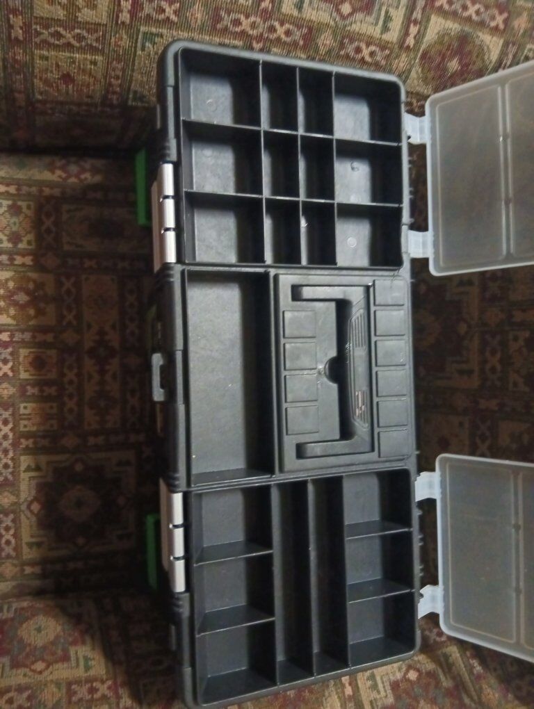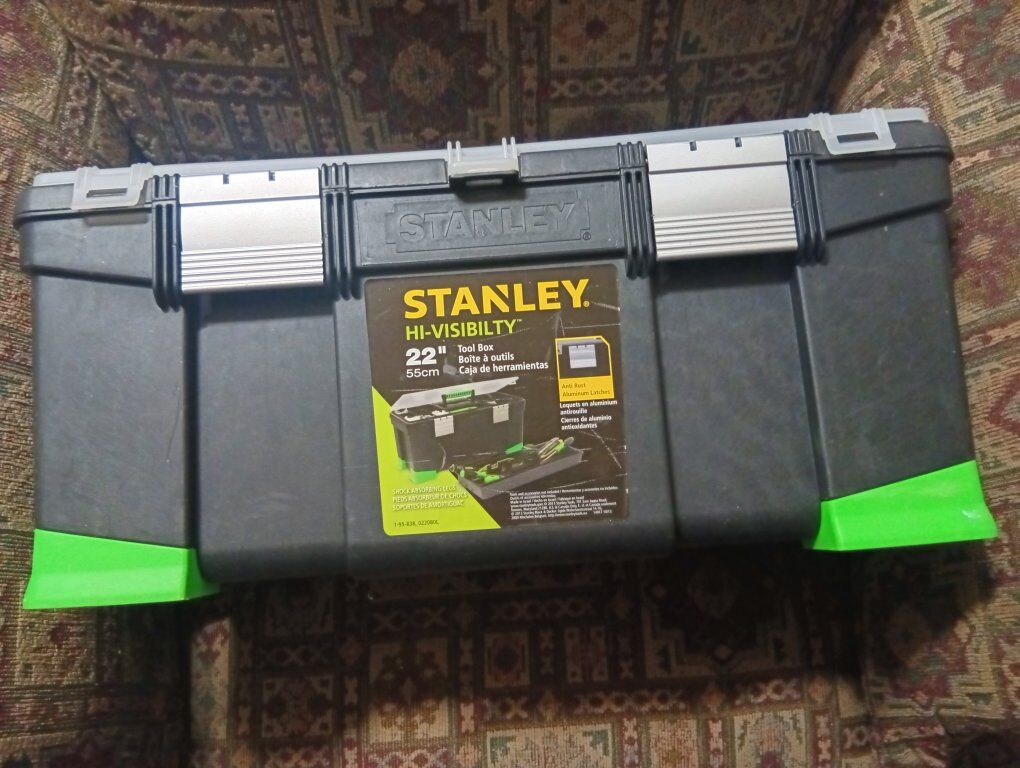 Stanley 22-in plastic tool box with clear top compartment for your supplies and parts also comes with the renewable tray inside!
