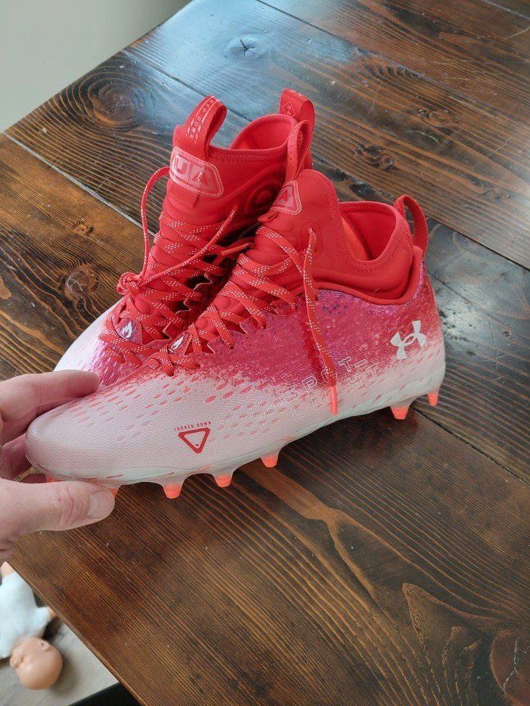 VenmoNew Under Armour Men's Sportlight Lux MC 2.0 Football Cleat. Size 11.5, color is red.