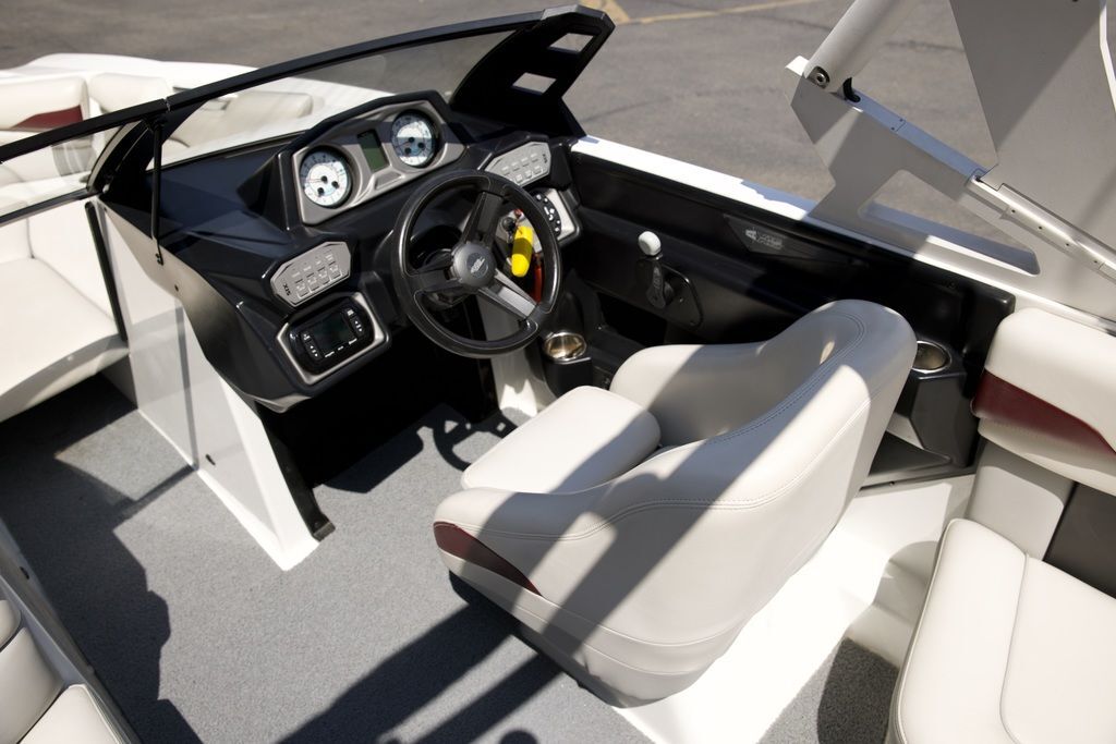 STRIKING NEW DASH DESIGNA striking new dash design with glowing white 3-in-1 gauges gives the cockpit a classic sporty look. A new panel of soft-key switches puts controls at the driver’s fingertips, and new helm and transom remotes for the audio system let the driver or passengers adjust the music.