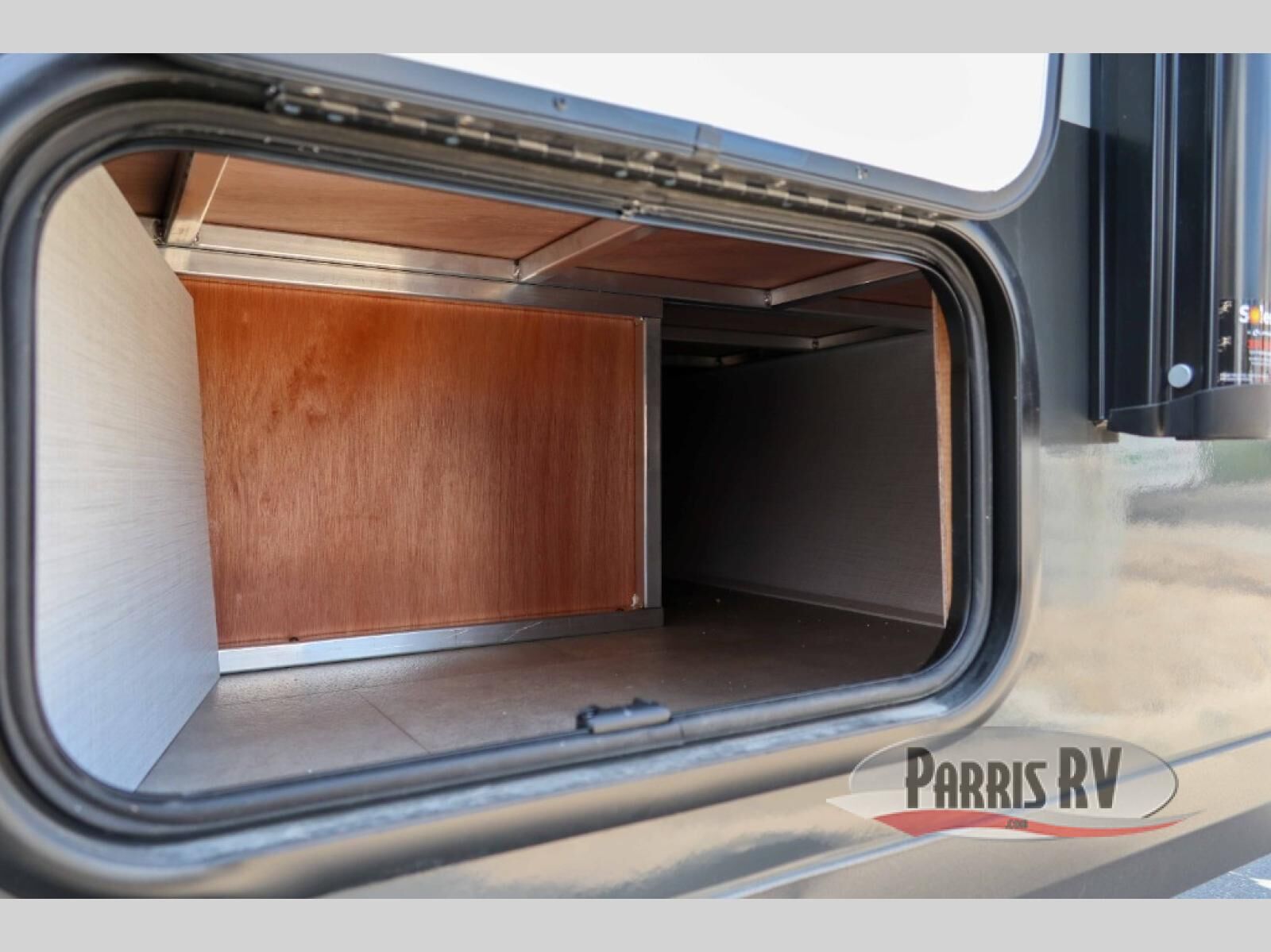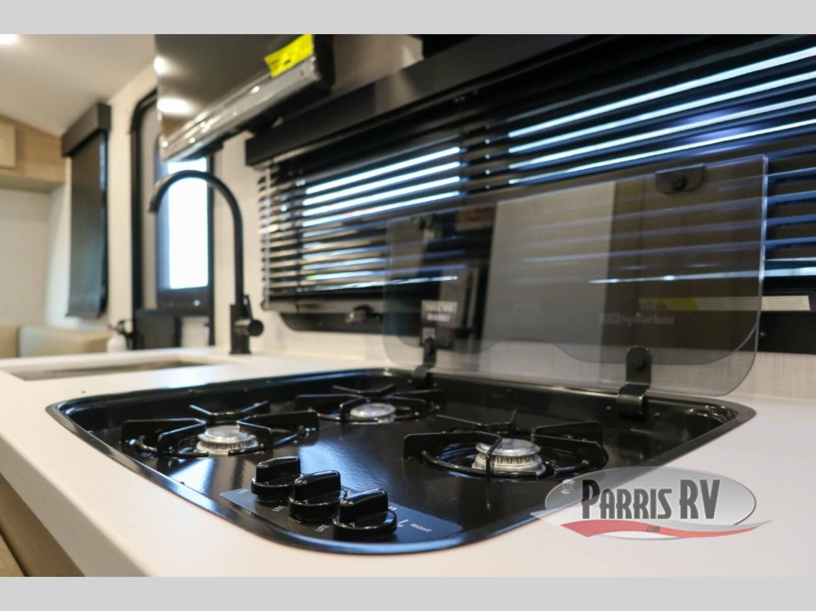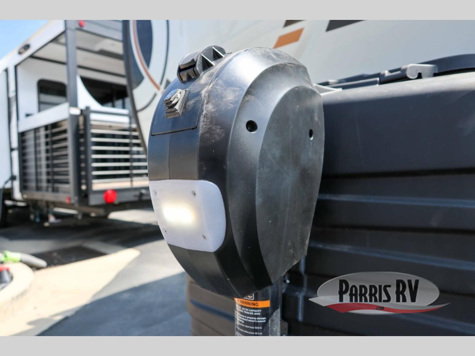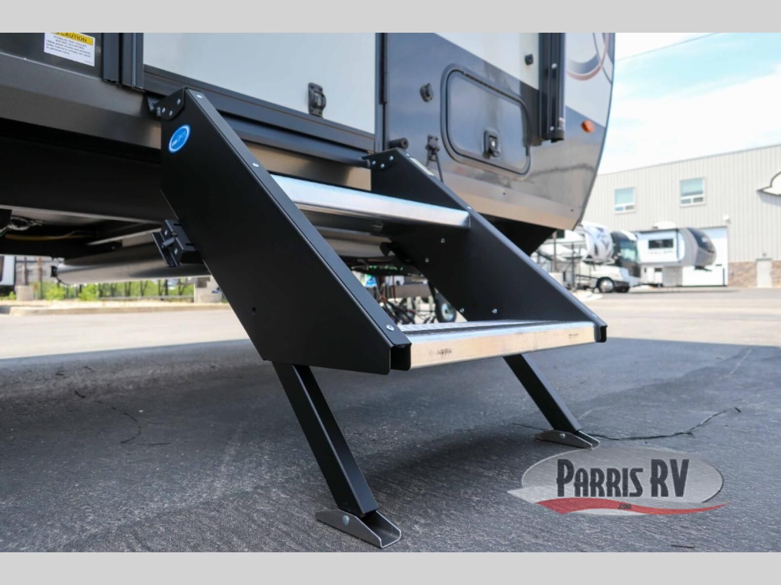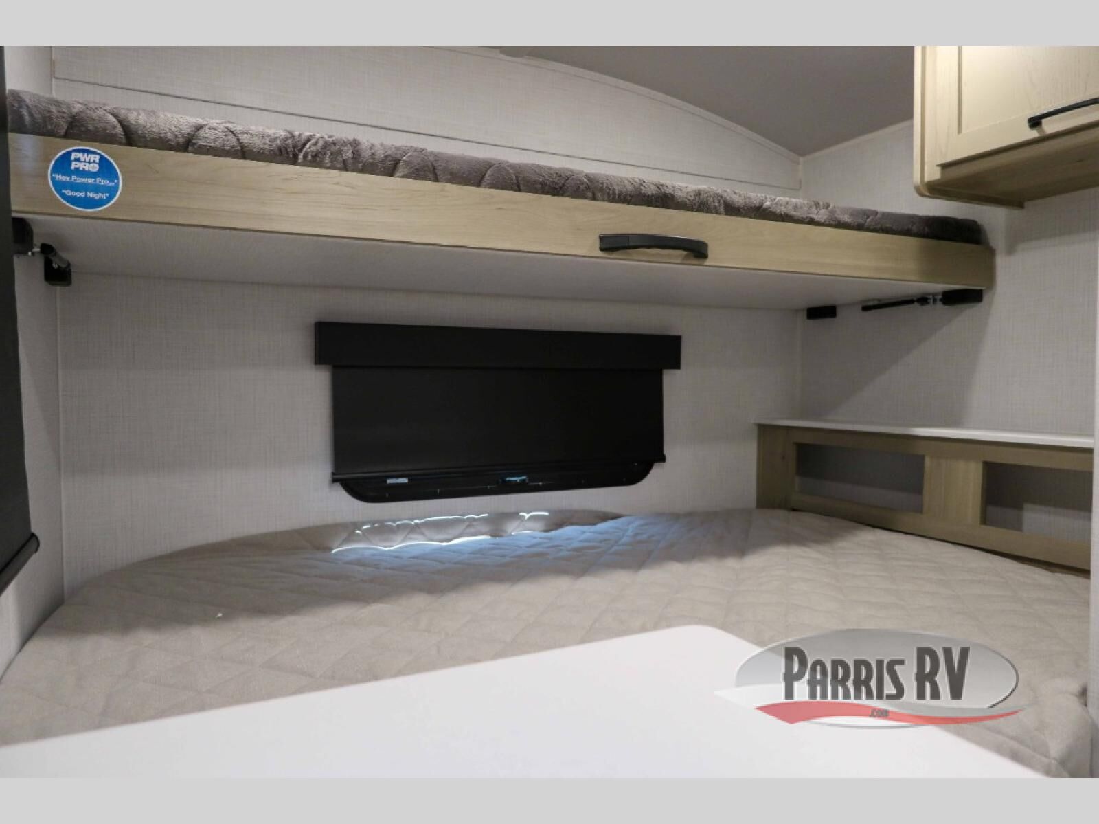 You'll love camping in this travel trailer that can sleep five each night. There is a front U-shaped dinette, a rear 54" x 74" full-size bed, plus a 26" x 80" flip-up bunk! A three burner cooktop and microwave oven let you create your best meals, and there is a 15' power awning and an exterior griddle if you want to cook outdoors. The full bath gives you privacy when freshening up after a day outdoors, and you'll find plenty of storage space in this unit, including in the overhead cabinets and the exterior pass-thru storage!