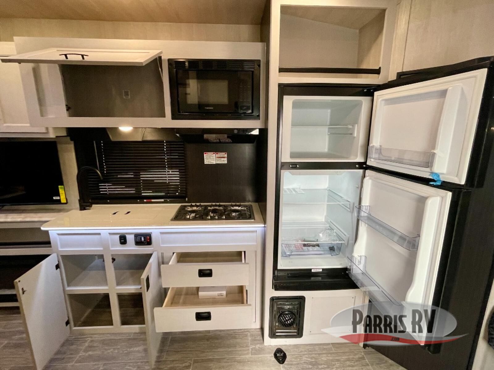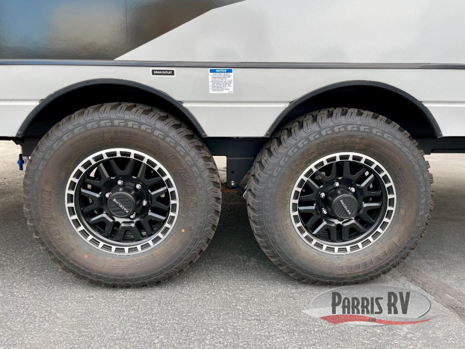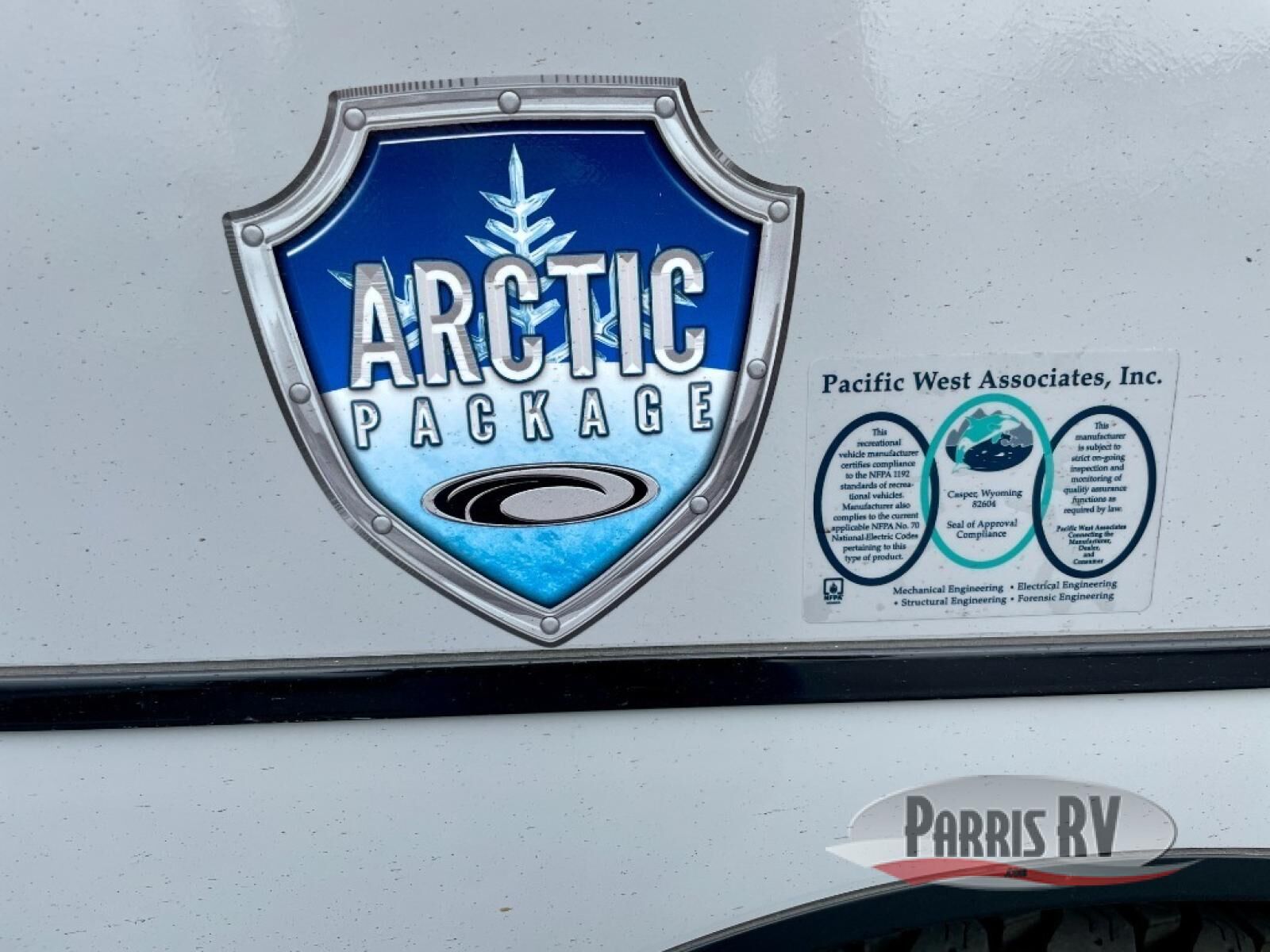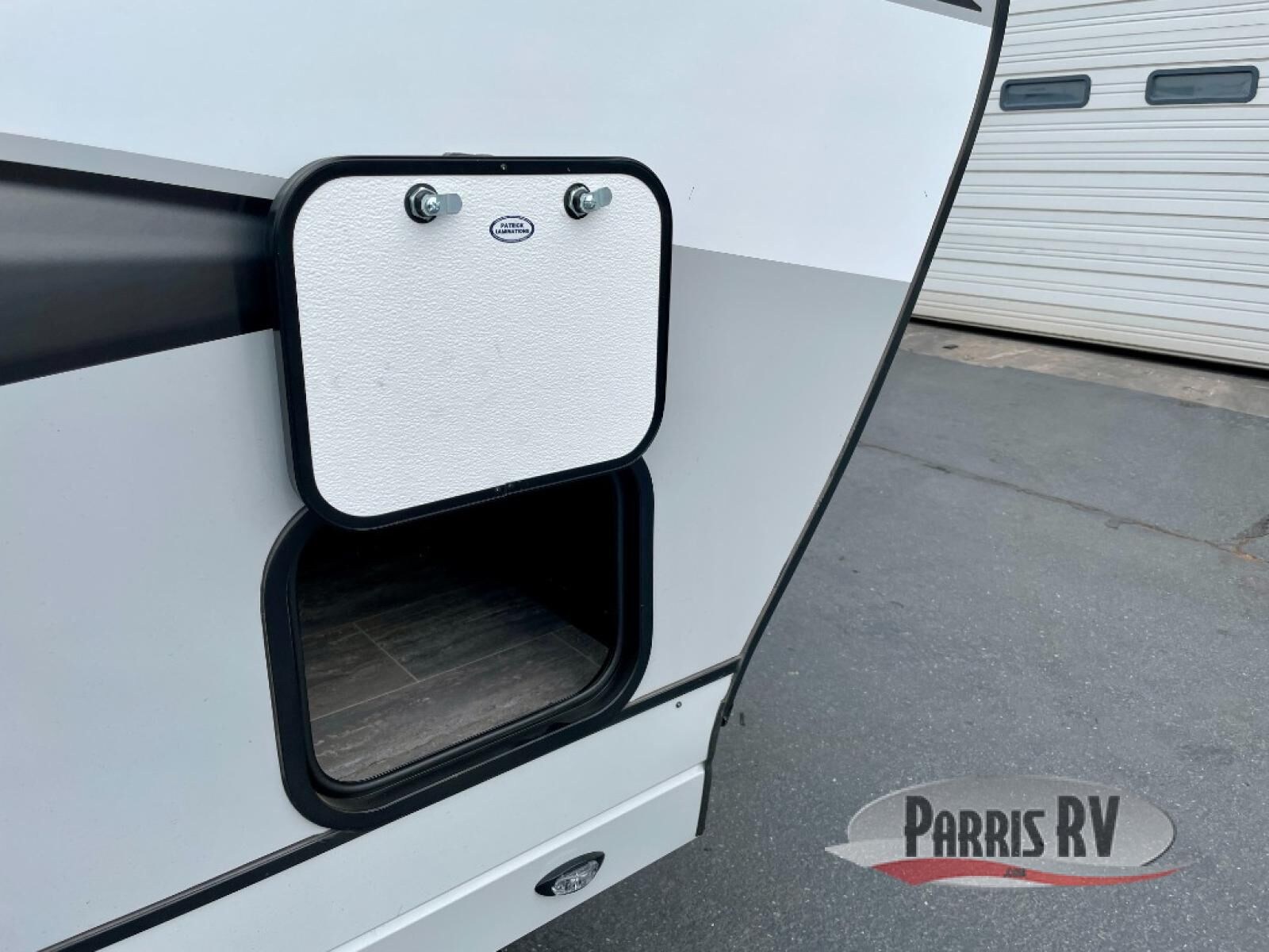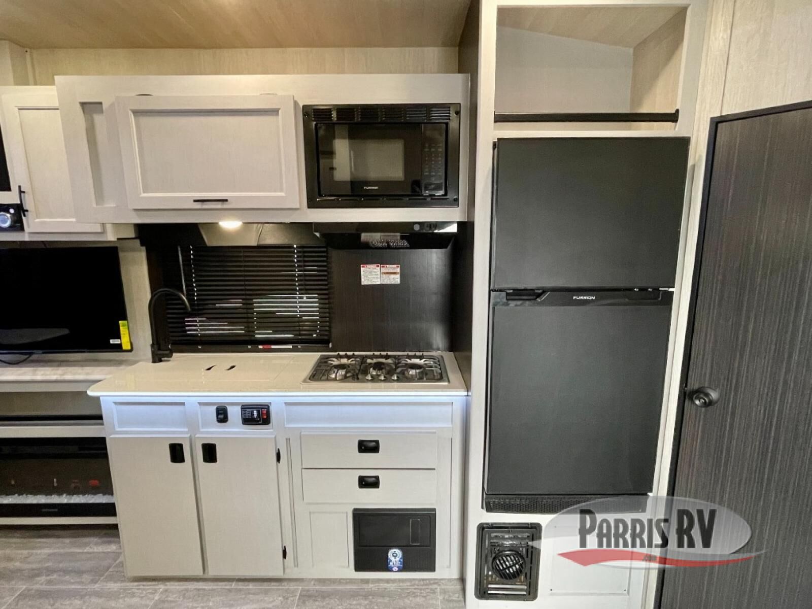 This simple, but convenient toy hauler is perfect for your riding weekends at the lake. It resembles model R2015XL, except the bath and bedroom flipped places in the layout. There is a spacious garage and a 7' ramp door to easily unload your toys. You can relax on the opposing rear power dinette with a single bed above for your guests. The front corner flip-up bed is sure to bring comfort, and the full bath lets you clean up each day. This model includes a three burner cooktop, an 10 cu. ft. 12V refrigerator, and a microwave oven to cook meals each day. Head outdoors to find a 200W solar panel, a patio awning, four stabilizer jacks, and exterior speakers to name a few conveniences!