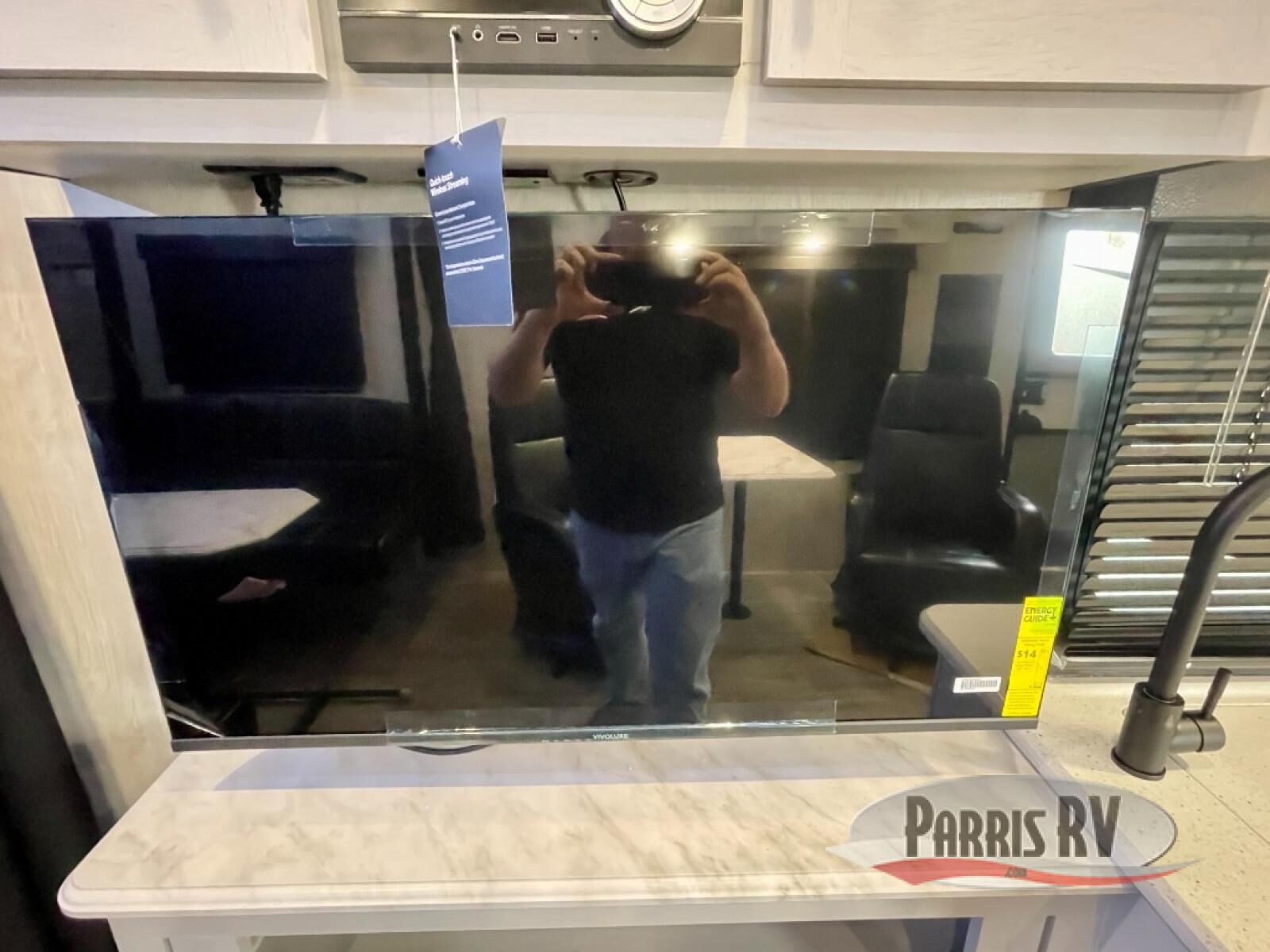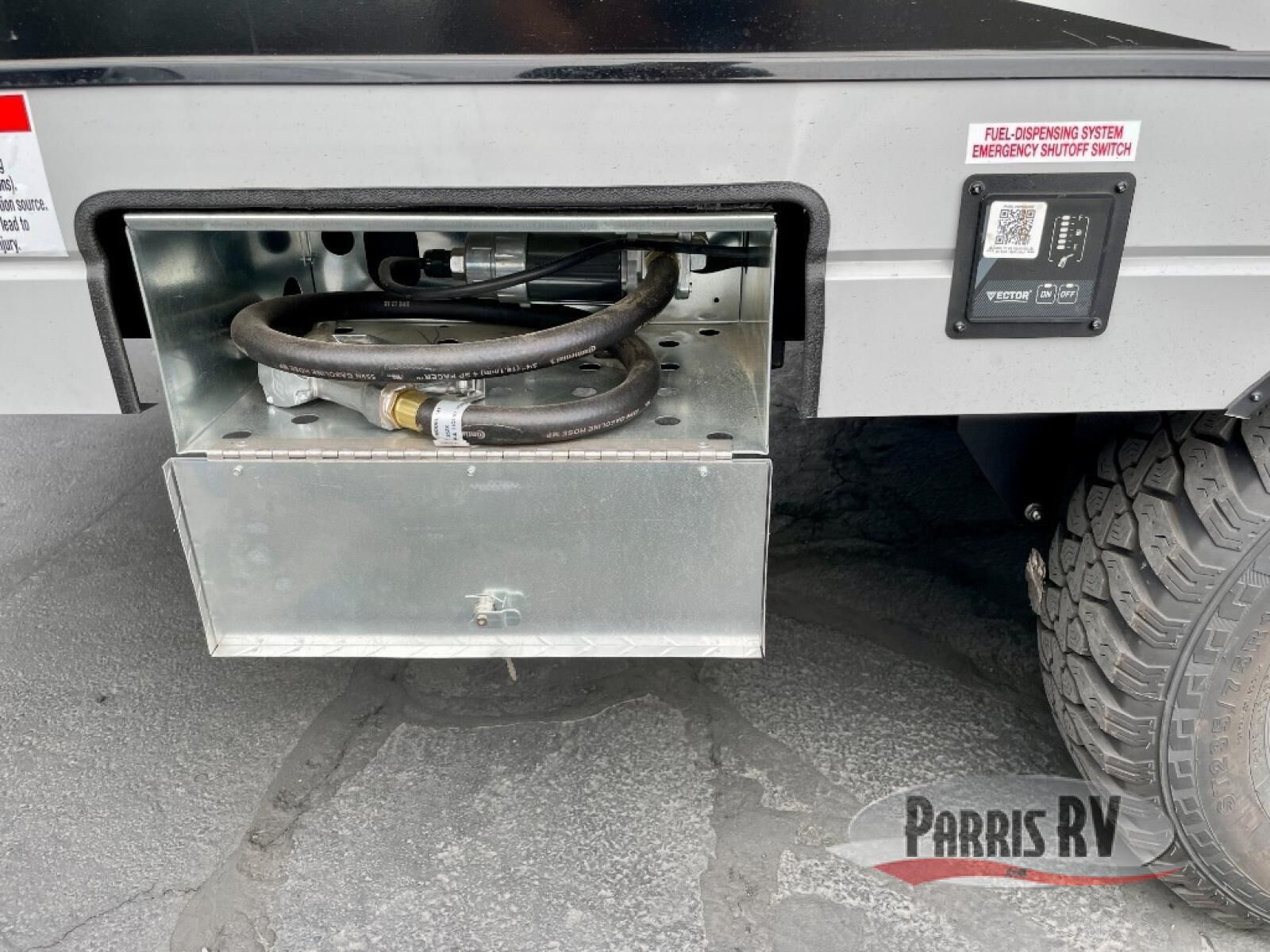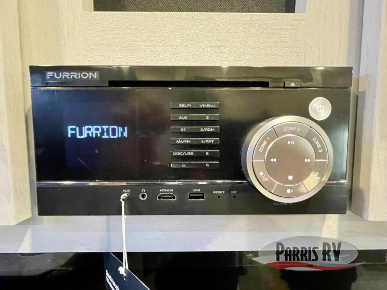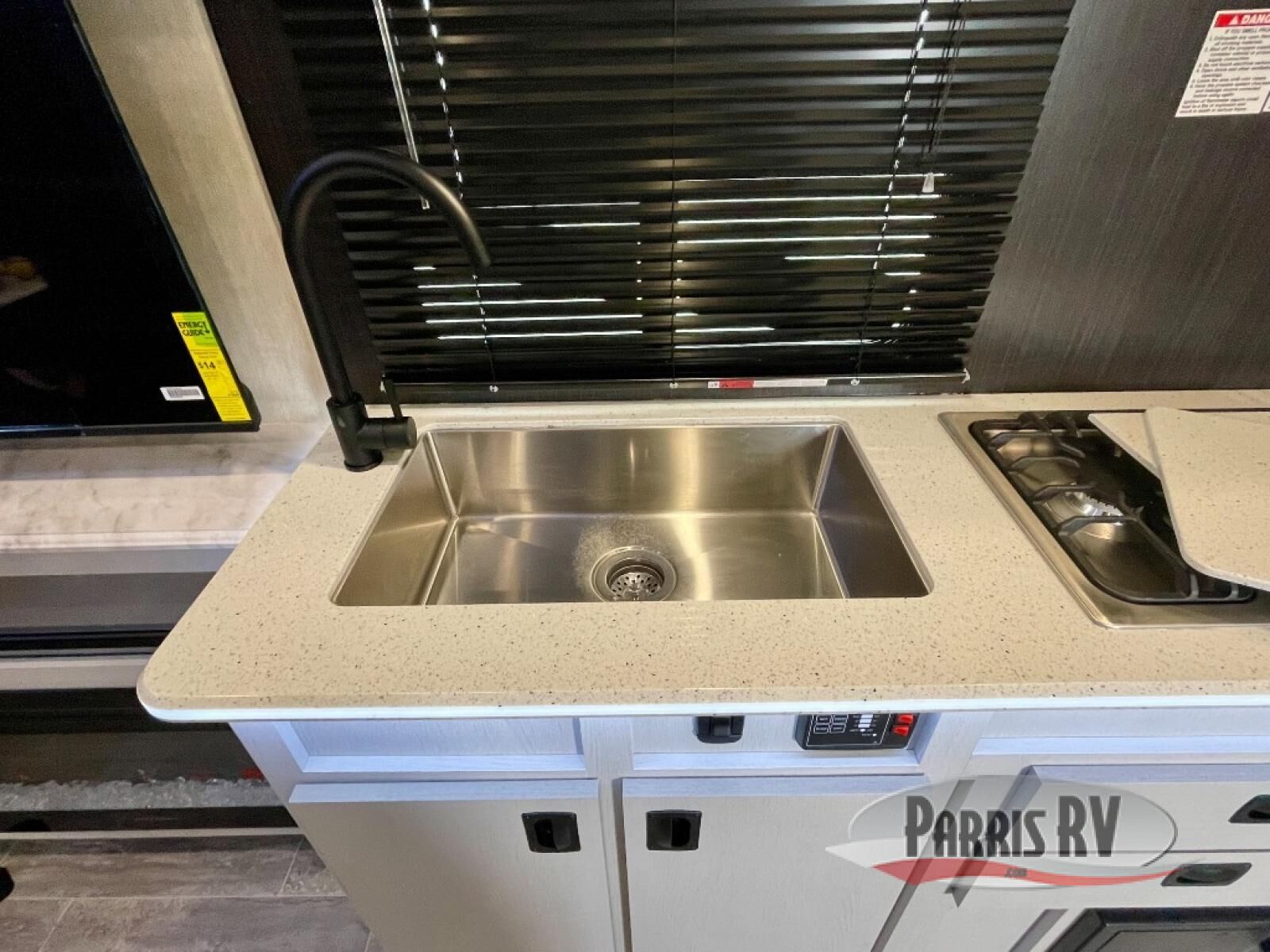 This simple, but convenient toy hauler is perfect for your riding weekends at the lake. It resembles model R2015XL, except the bath and bedroom flipped places in the layout. There is a spacious garage and a 7' ramp door to easily unload your toys. You can relax on the opposing rear power dinette with a single bed above for your guests. The front corner flip-up bed is sure to bring comfort, and the full bath lets you clean up each day. This model includes a three burner cooktop, an 10 cu. ft. 12V refrigerator, and a microwave oven to cook meals each day. Head outdoors to find a 200W solar panel, a patio awning, four stabilizer jacks, and exterior speakers to name a few conveniences!