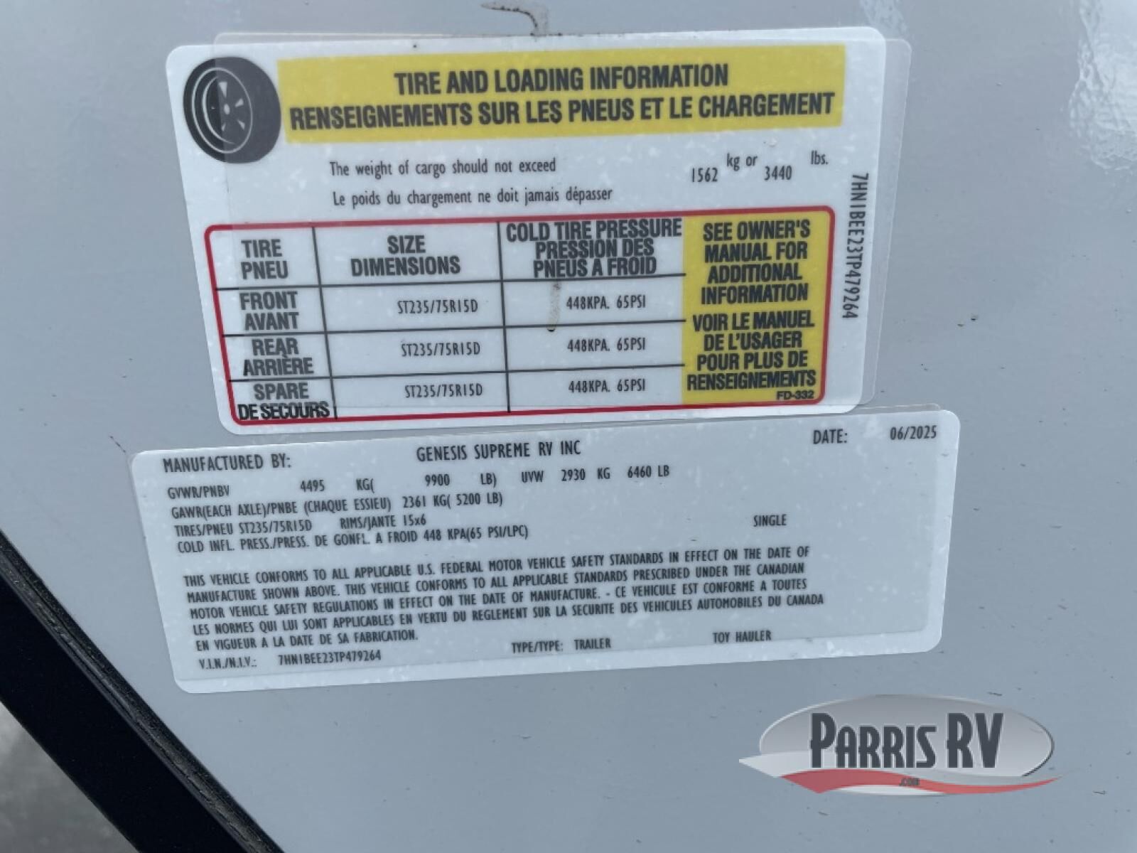 Genesis Supreme Rage'n travel trailer toy hauler R2215SSXL highlights: