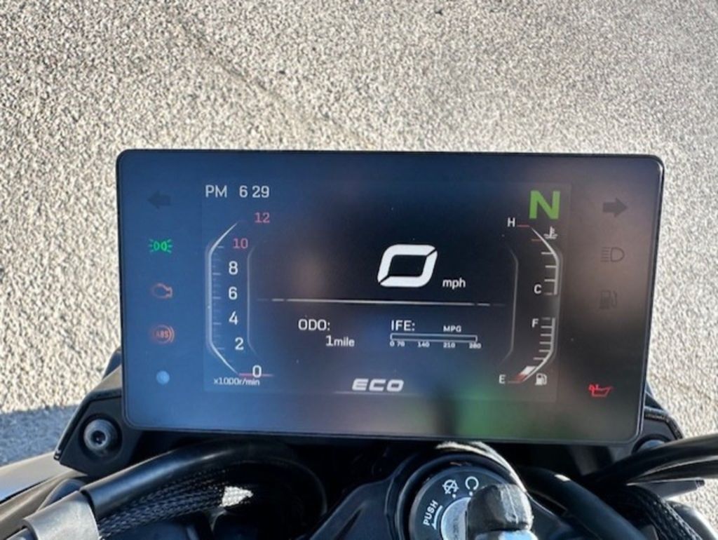 The 650NK features a large, 5-inch TFT display. Bright sunshine? You’ll have no issues with glare. Overcast skies? Screen brightness adjusts automatically. The full-color LCD instrument display delivers at-a-glance information, including rpm, gear, speed, even phone connectivity. Two interfaces differentiate your riding modes.