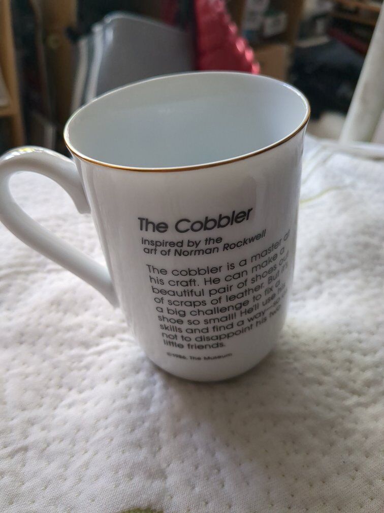 PayPalno scammers please up for sale is this vintage the cobbler good boy cup by Norman Rockwell. $15