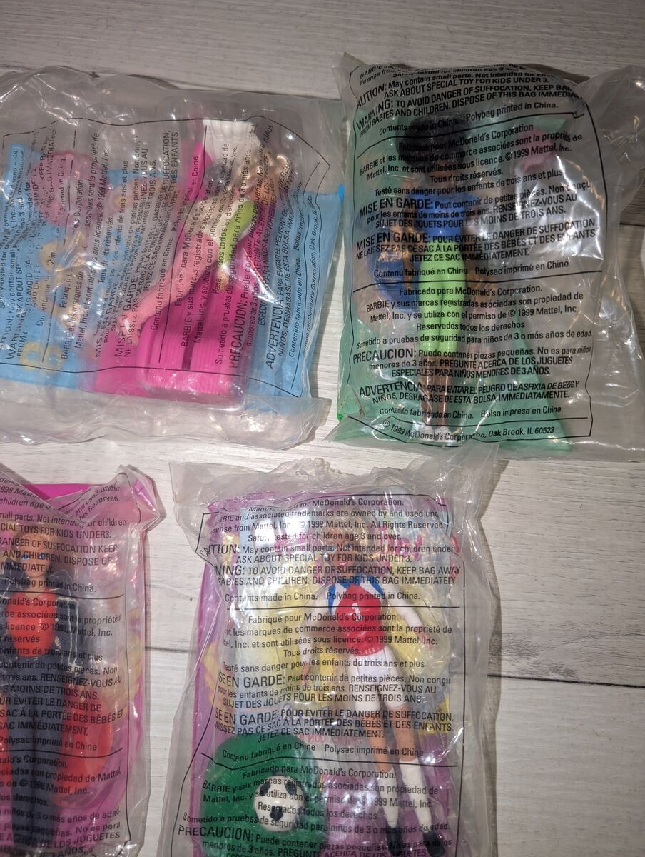 All 6 for $8. All factory sealed McDonalds Kids Meal Toys , Barbie Doll Figure Toys. See ALL pictures. You will get what is shown in pictures. No flaws.