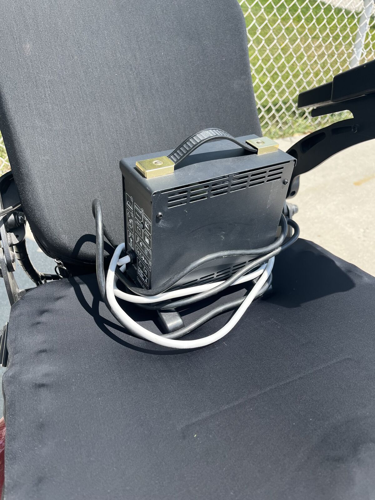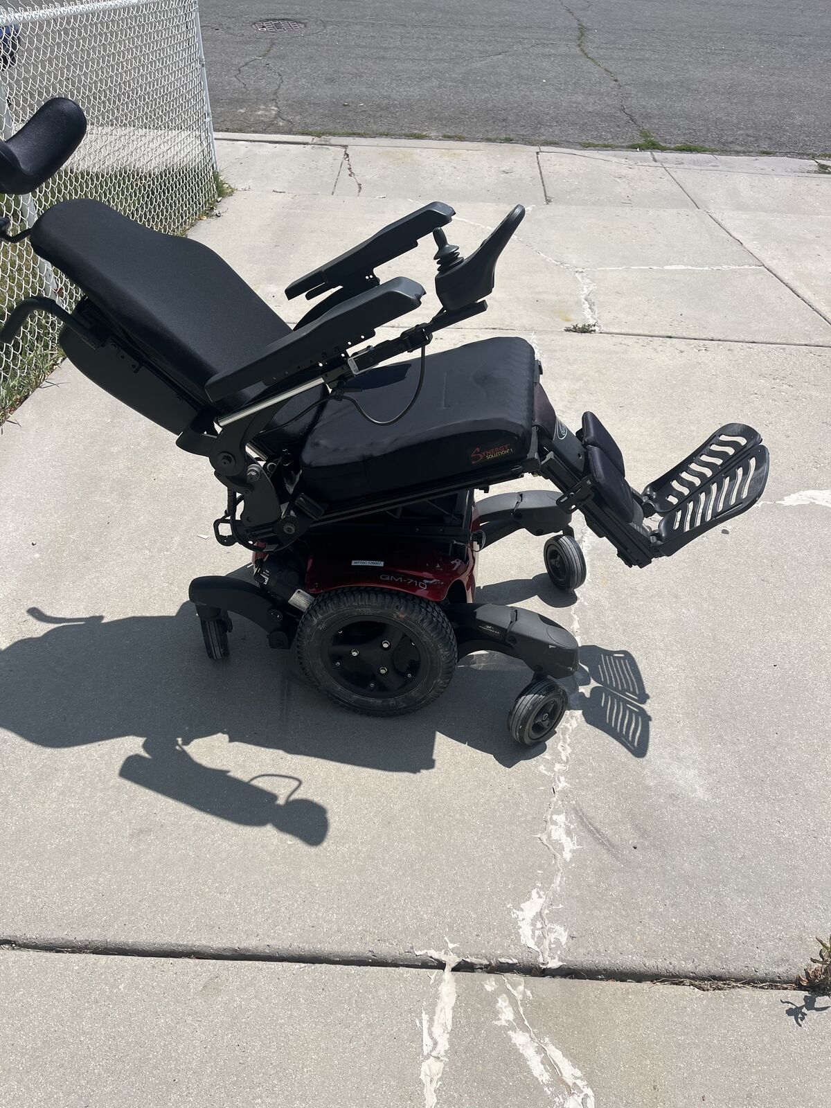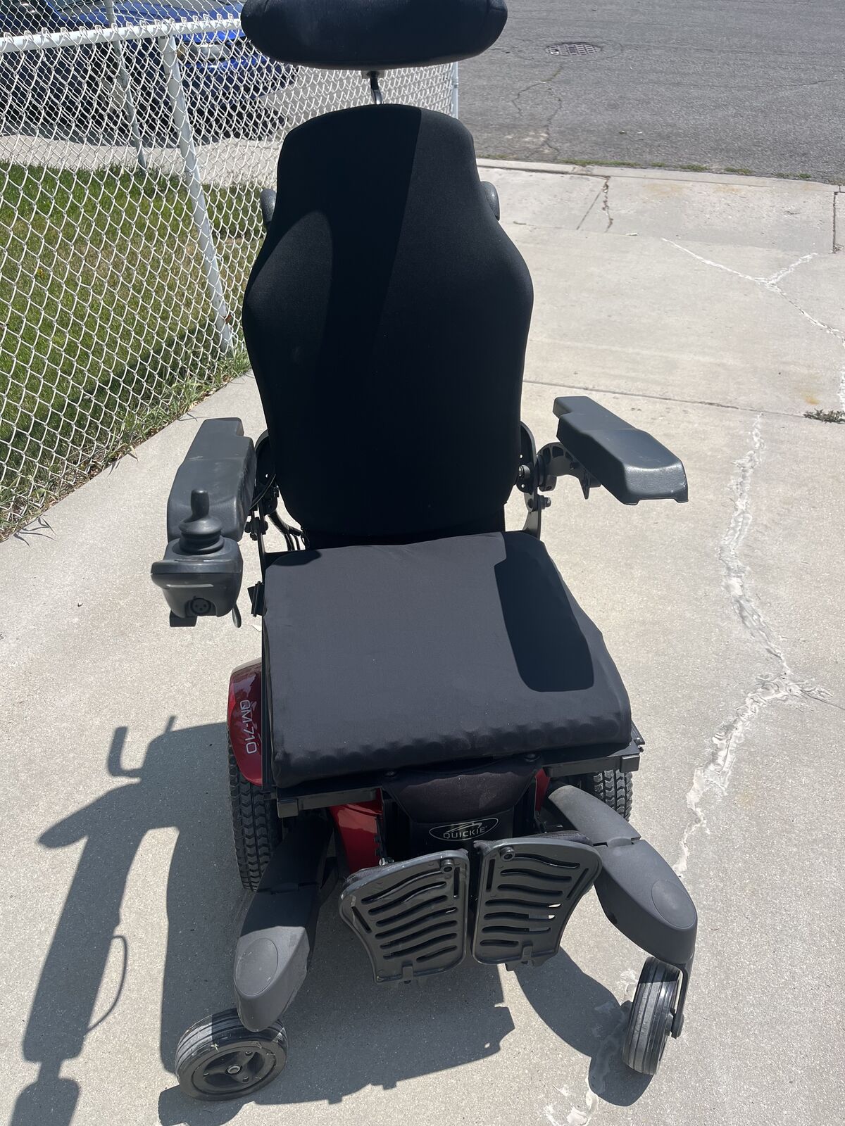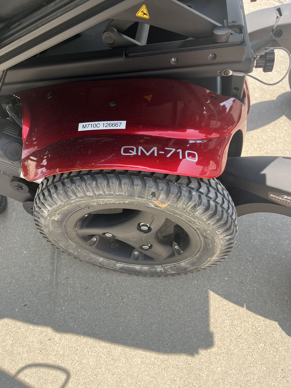 PayPalThis is a QM 710 wheel chair. It has title, recline and elevated leg-rest. It has a been used but nothing wrong with it. New wheels and casters. It comes with a charger and battery is great. It does have a few scratches.