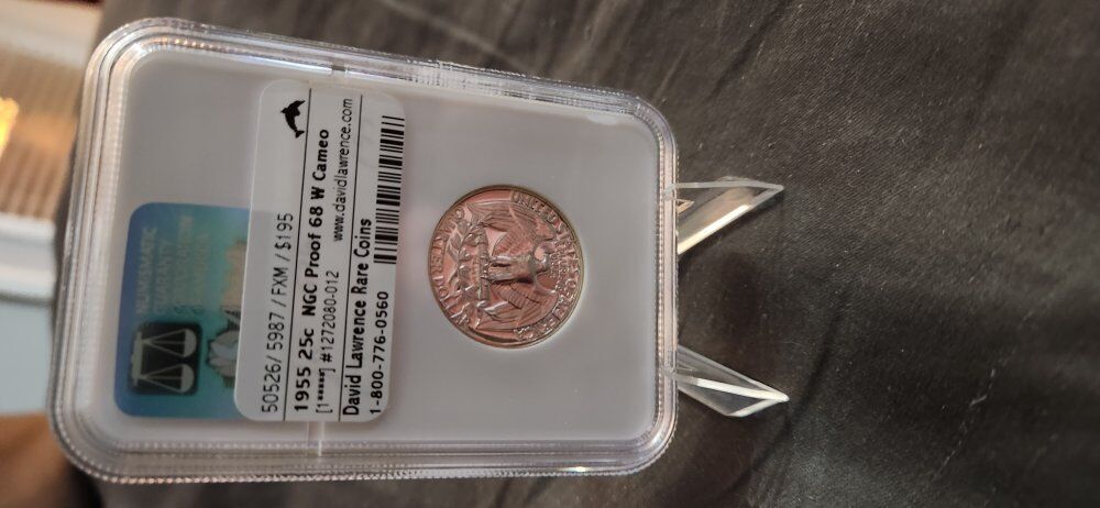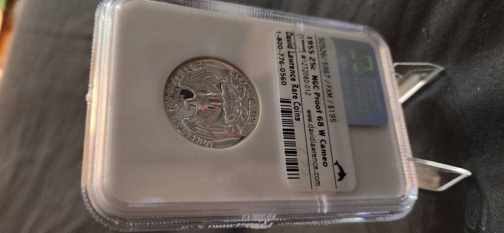 VenmoYOUR LUCKY DAY ONE DAY ONLY!!! 1955 Washington Quarter .25 Proof State Graded PF68 W CAMEO! A great piece of US history. The 1955 is one of the most collectible mintage of the 1941-1964 Washington quarter! Very low mintage. A great piece of US nusmismatic history. Beautifully preserved and graded uncirculated Proof State PF68 W CAMEO by NGC. This coin is near flawless with a brilliant finish. The case is a beautiful presentation! Comes with the case stand. $165 obo. KSL Messenger or txt. 8016414771 KSL messenger is best.